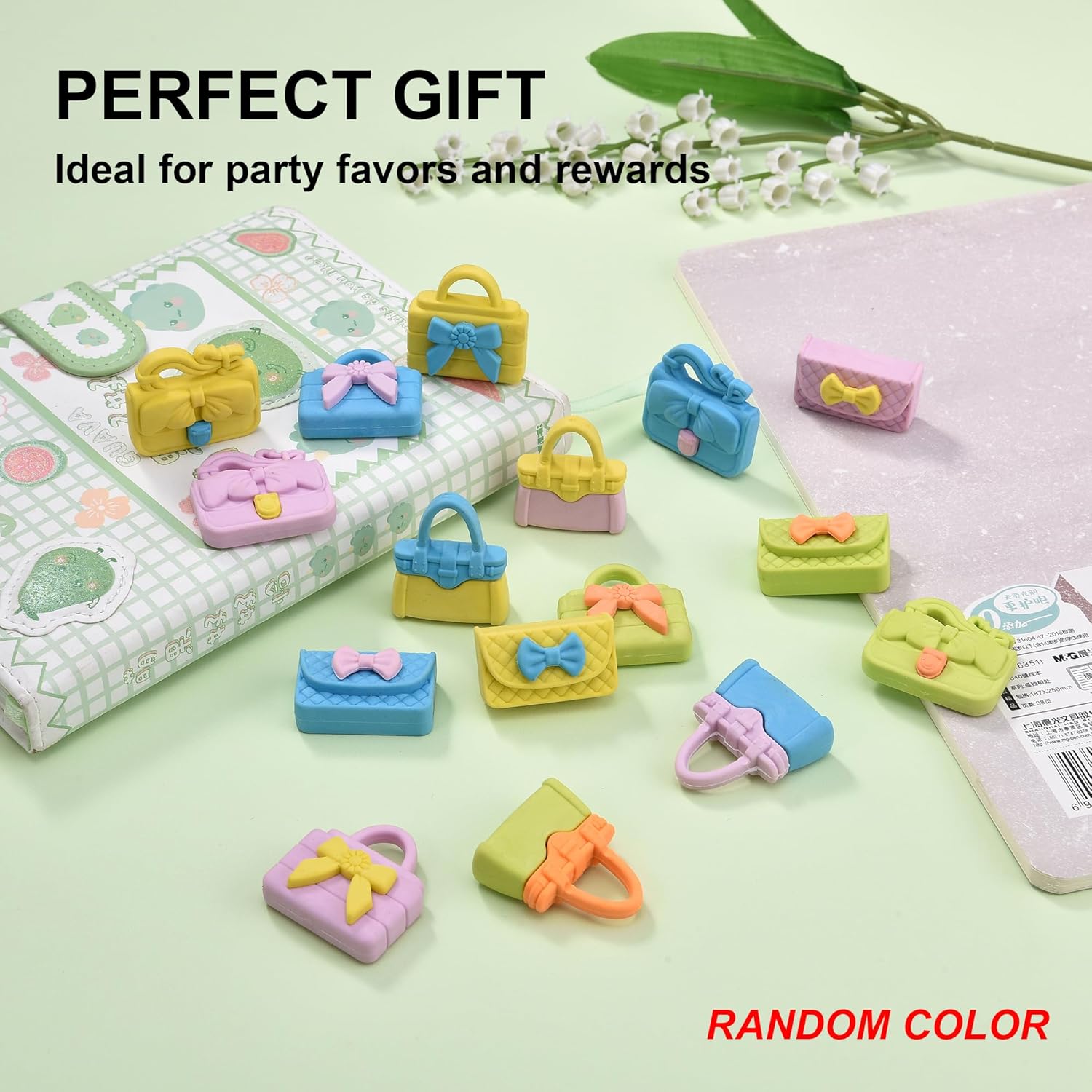 - Adorable Design: Features 24 charming bag-shaped erasers in vibrant colors, perfect for adding a fun and stylish touch to any pencil case