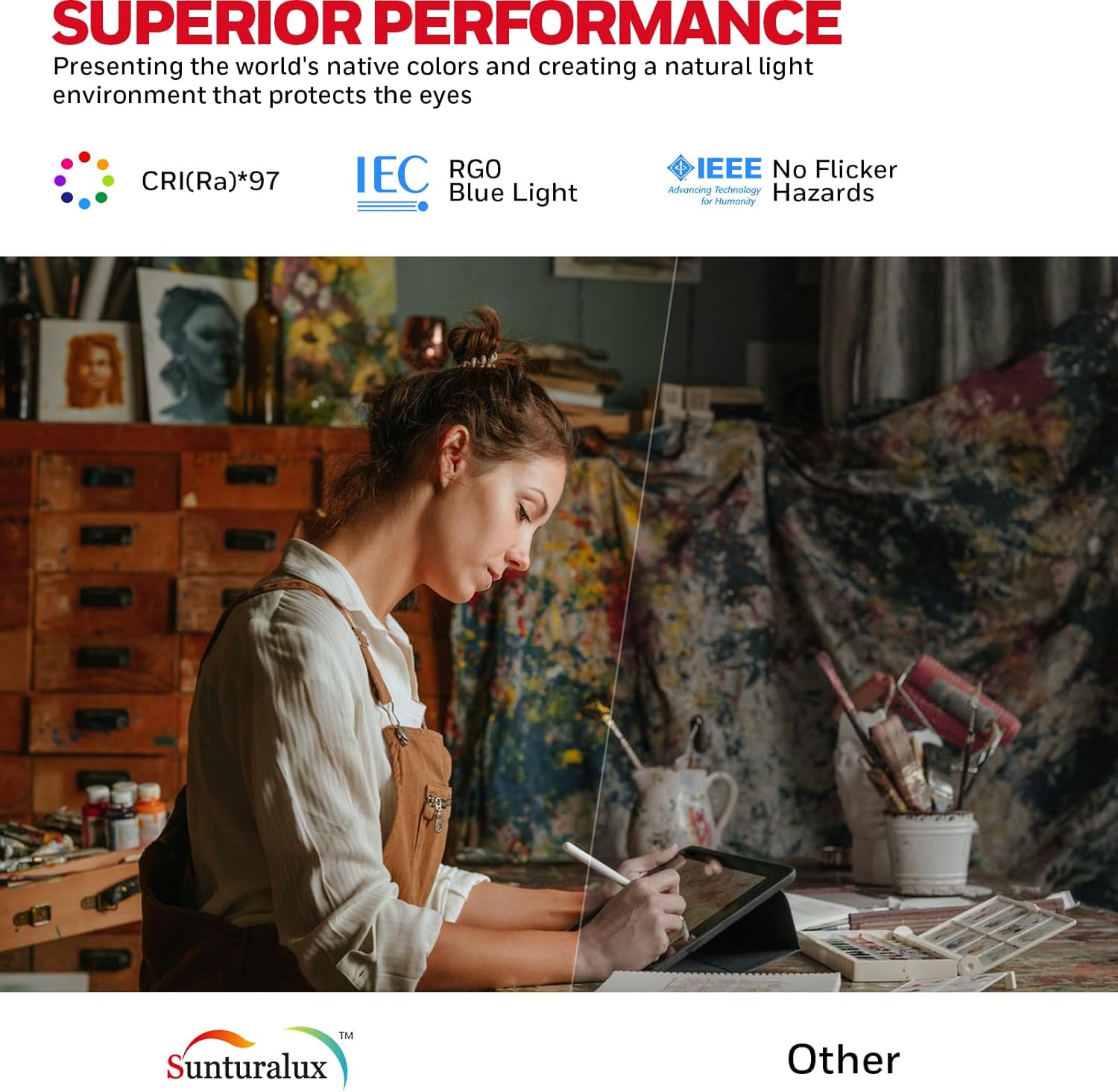 - Comfortable Natural Light: Honeywell HWT-05B02 desk lamp with clamp features a Sunturalux chip and 108 full-spectrum LED beads, offering a color rendering index (CRI(Ra)) ≥97. This design enables the LED desk lamp to mimic natural light, ensuring both comfortable illumination and accurate color reproduction.Enjoy the sunlight at home.