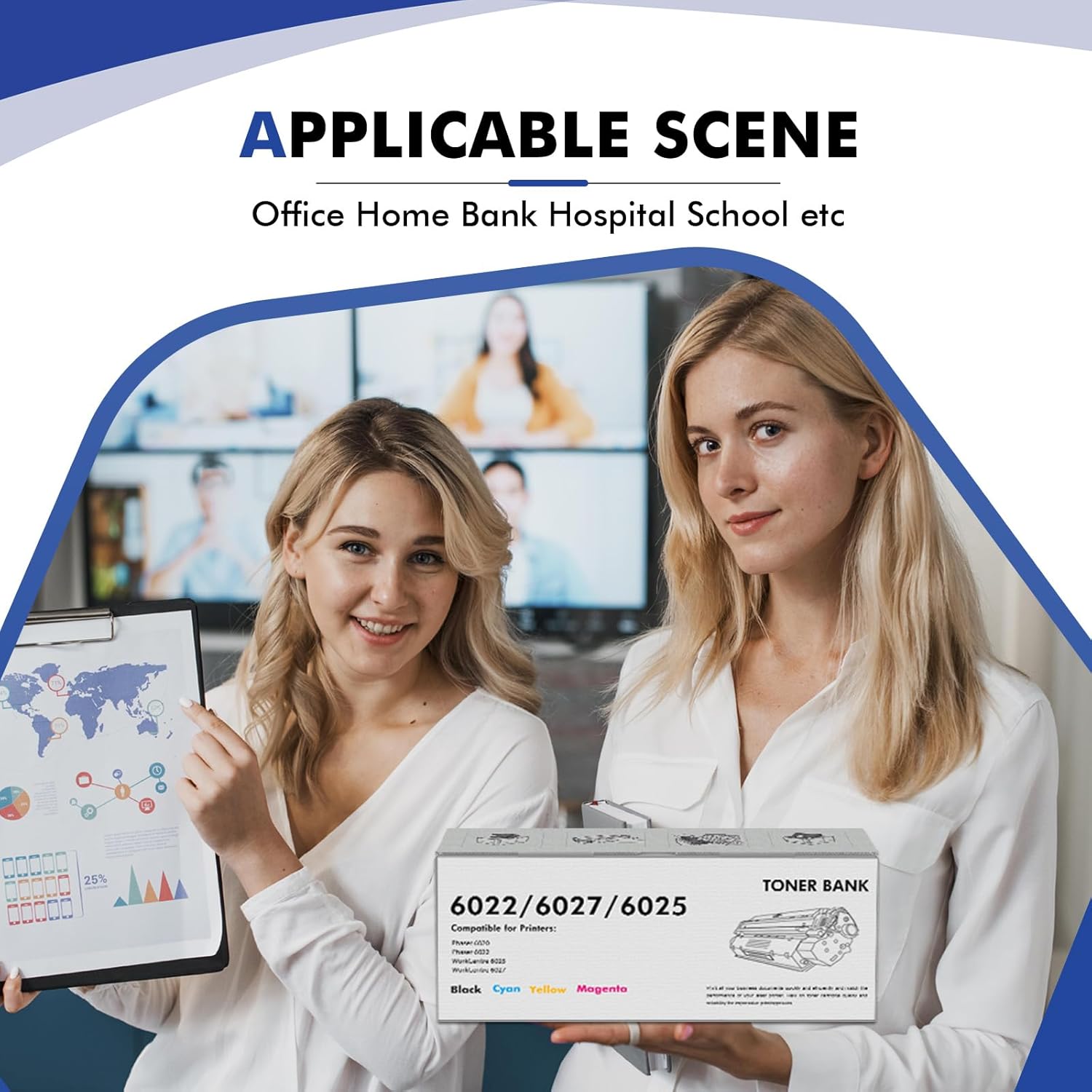 - Toner Bank 6022 toner Included: 4 Packs 6022 extra high capacity toner cartridge Compatible for Phaser 6027 Cyan Magenta Yellow Black toner cartridge