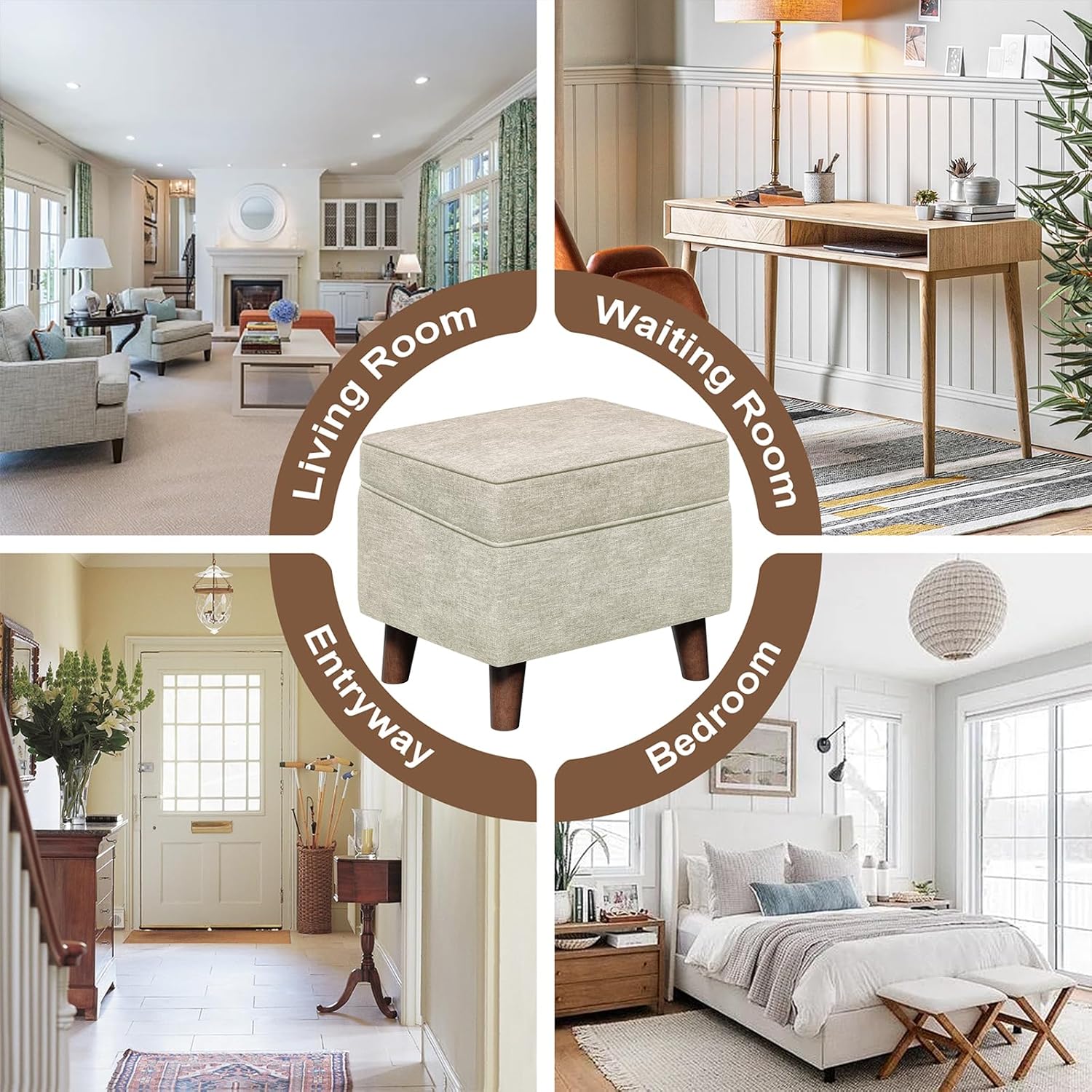 - 【Durable Solid Wood Legs】 Built with solid wood legs and equipped with non-slip mats, foot ottoman offers robust stability and protects your floors from scratches. Its sturdy construction ensures long-lasting use, stability and safety.