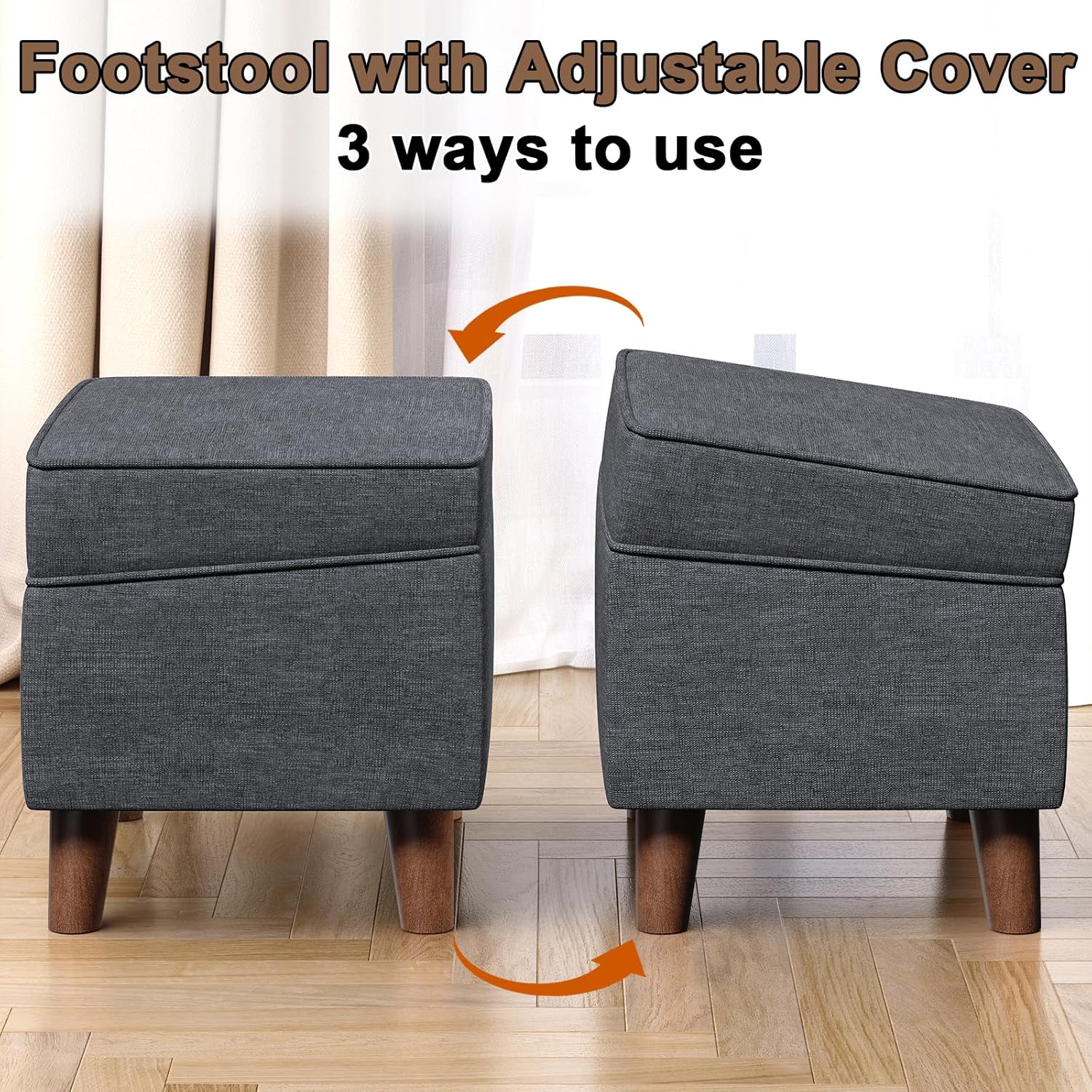 - 【Adjustable Lid Functionality】 Ottoman with storage features an adjustable lid that can be set flat or inclined. Use it as a footrest, extra sitting stool, step stool, or pet stool. The inclined position offers two angles for optimal relaxation.