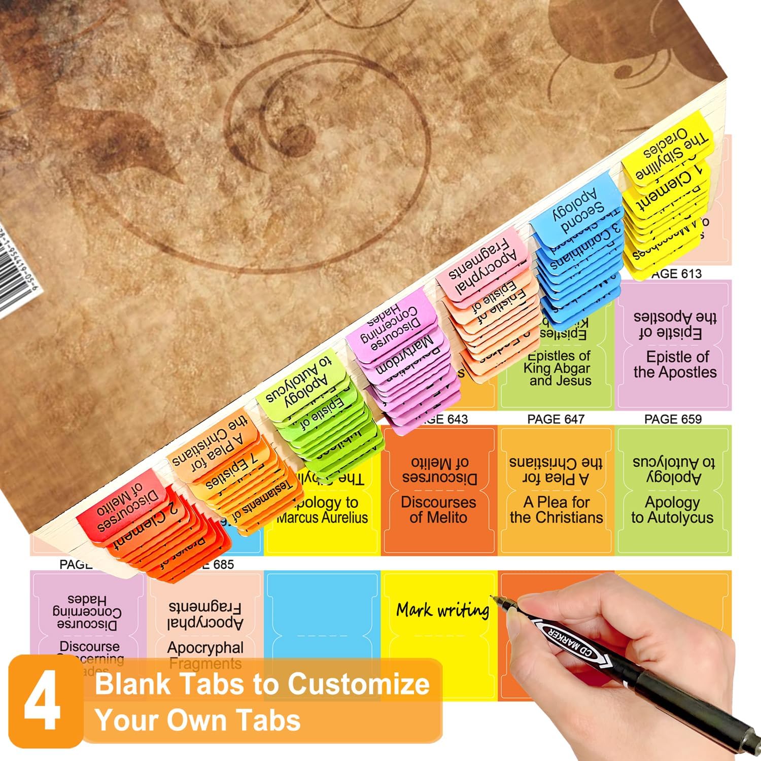 Index Tabs for The Complete 100-Book Apocrypha,2024 Edition 72 Color Coded Laminated Durable Tabs, 68 Books Chapter Tabs, 4 Blank Tabs,1 Placement Guide Card (Book Not Included)