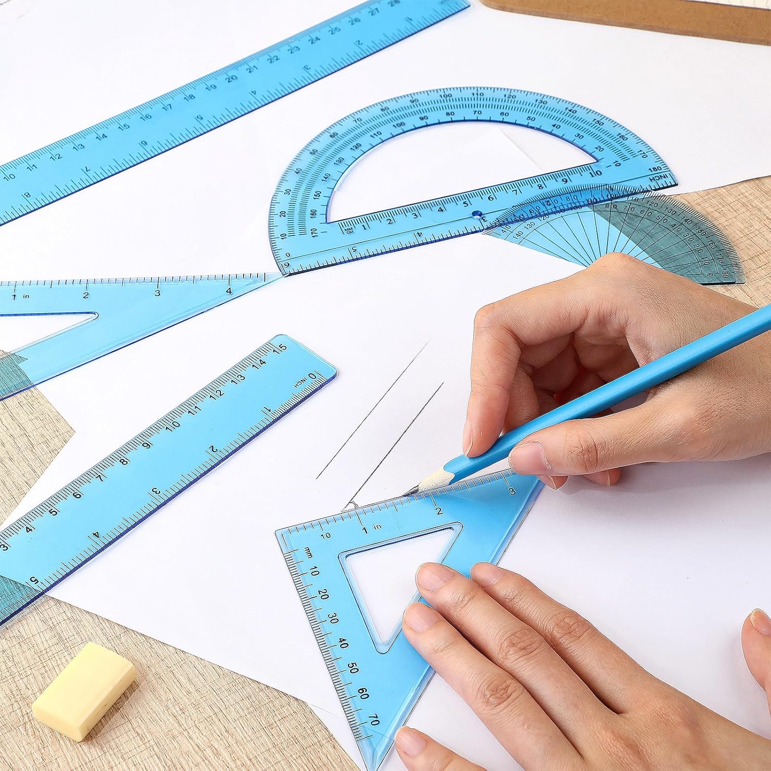 - Innovative Hollow Design: adopting a hollow design, the triangle rulers and hollow protractor can better grip the paper; Additionally, the hollow protractor has a hole at the bottom, aiding in the positioning of points when drawing different angled geometric figures