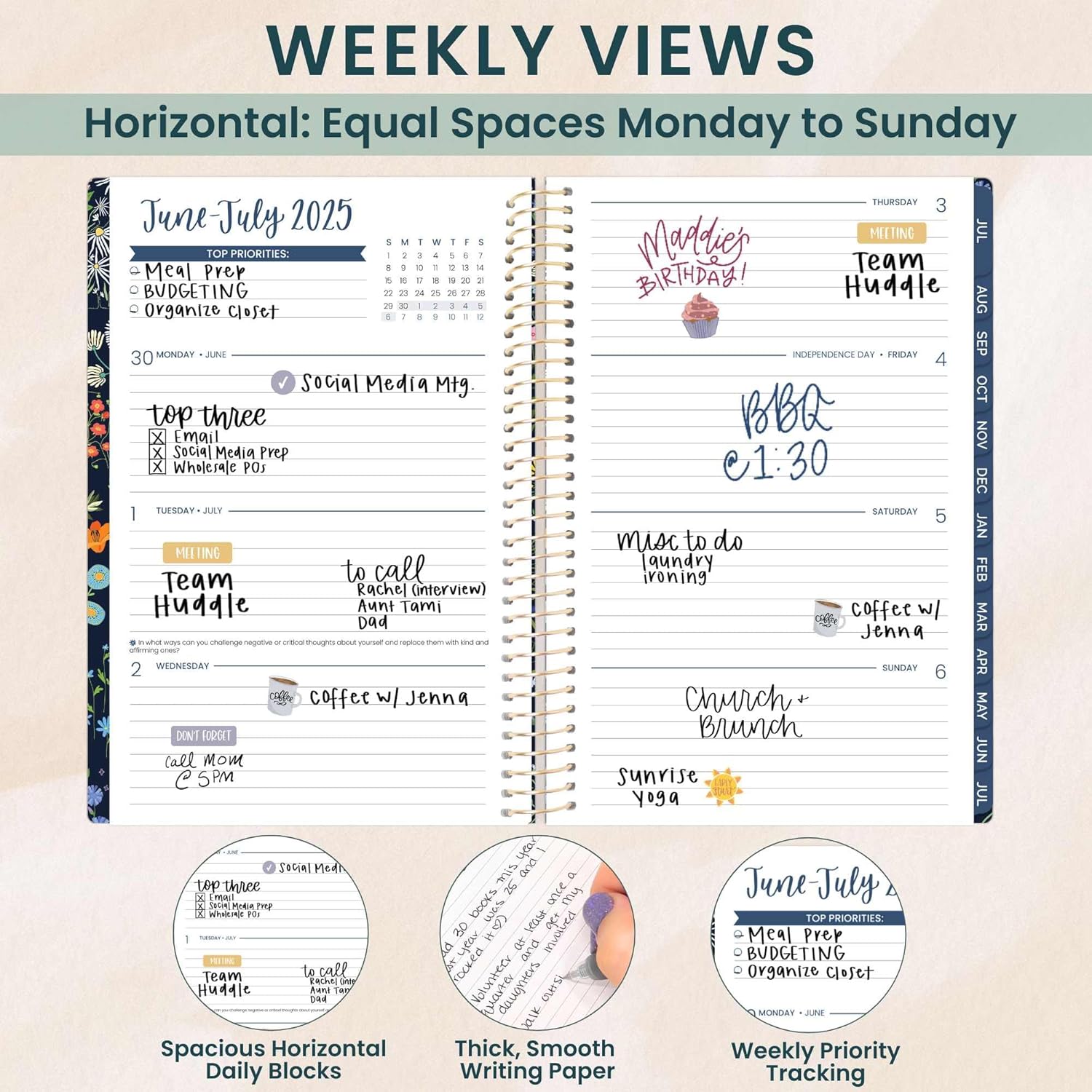 - WEEKLY & MONTHLY LAYOUT FOR EASY PLANNING! Featuring spacious weekly planner pages and two-page monthly planner spreads, this day planner runs from July 2025 through July 2026—giving you over 365 days to track appointments, tasks, and goals.