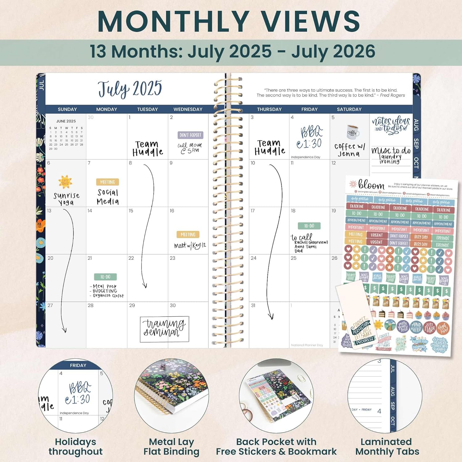 - STAY ORGANIZED WITH A BLOOM PLANNER 2025-2026 FOR WOMEN! This beautifully designed weekly and monthly planner helps you manage your schedule with ease. Choose from 15 stylish cover options—check the Product Description or visit our store for more designs and inspiring office essentials.