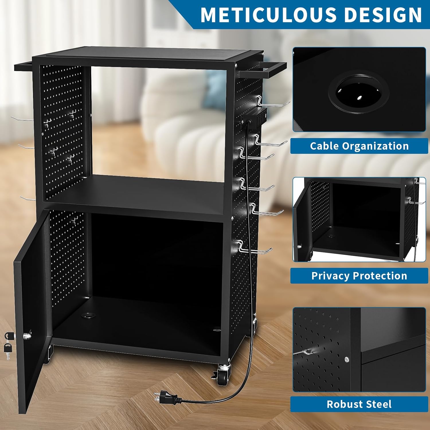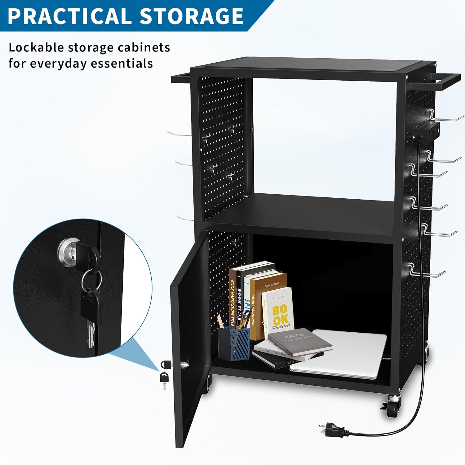 • Built-In Power Strip for Convenient Access: A side power strip offers easy access to outlets, making it effortless to connect power tools, laptops, and other electronic devices. This mobile computer cart boosts productivity by keeping devices powered and ready to go.