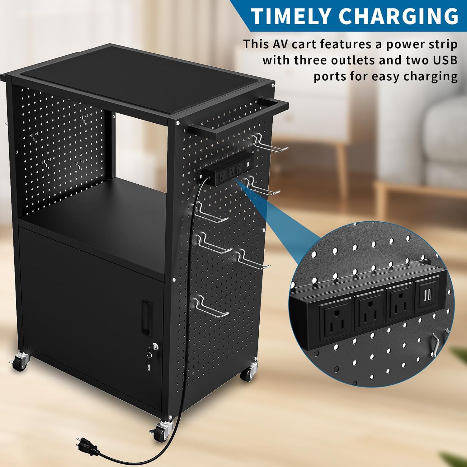 • Organized Storage with Pegboard and 12 Hooks: Equipped with side pegboards and 12 sturdy tool hooks, this AV cart makes it simple to hang small tools and accessories, keeping your workspace neat and maximizing storage efficiency.