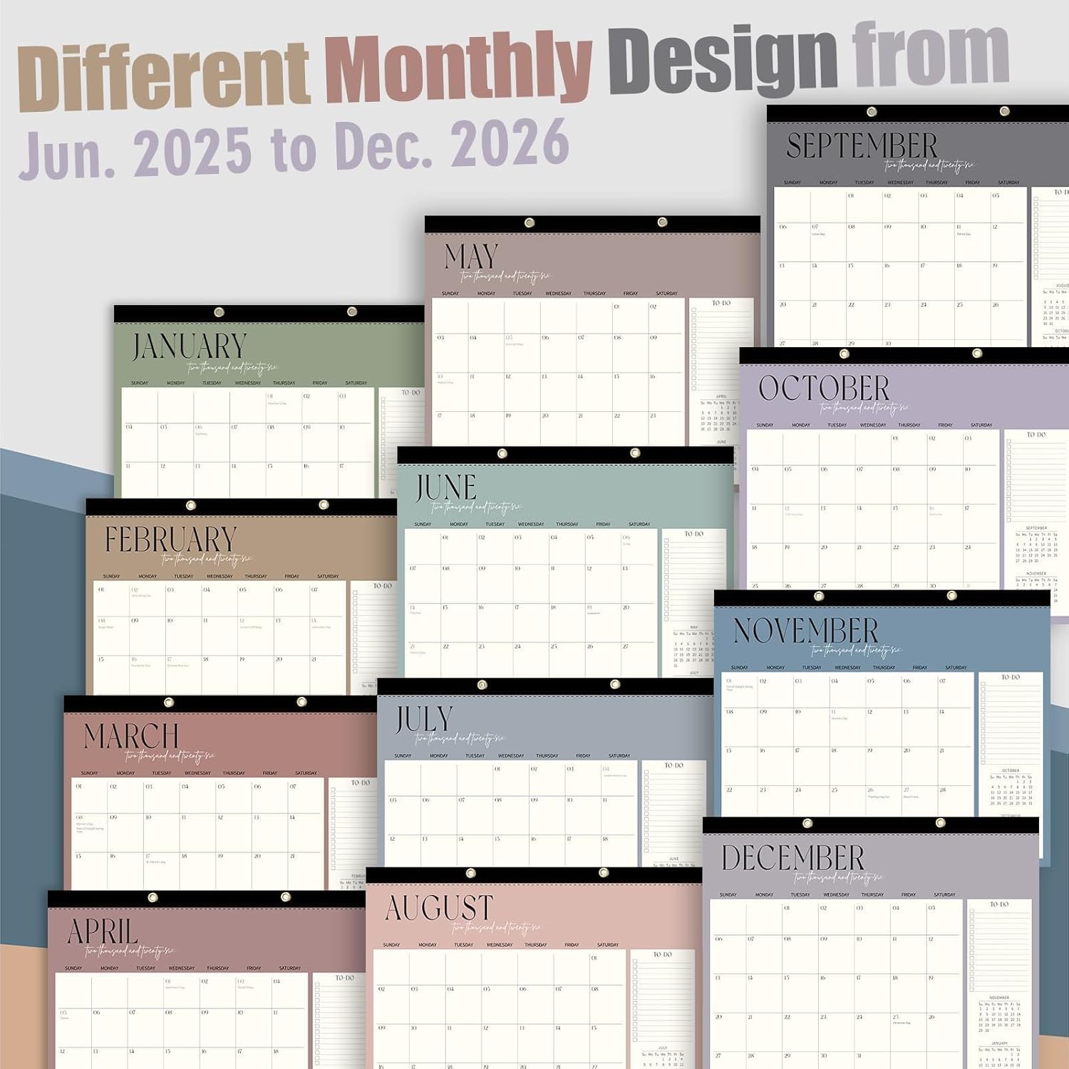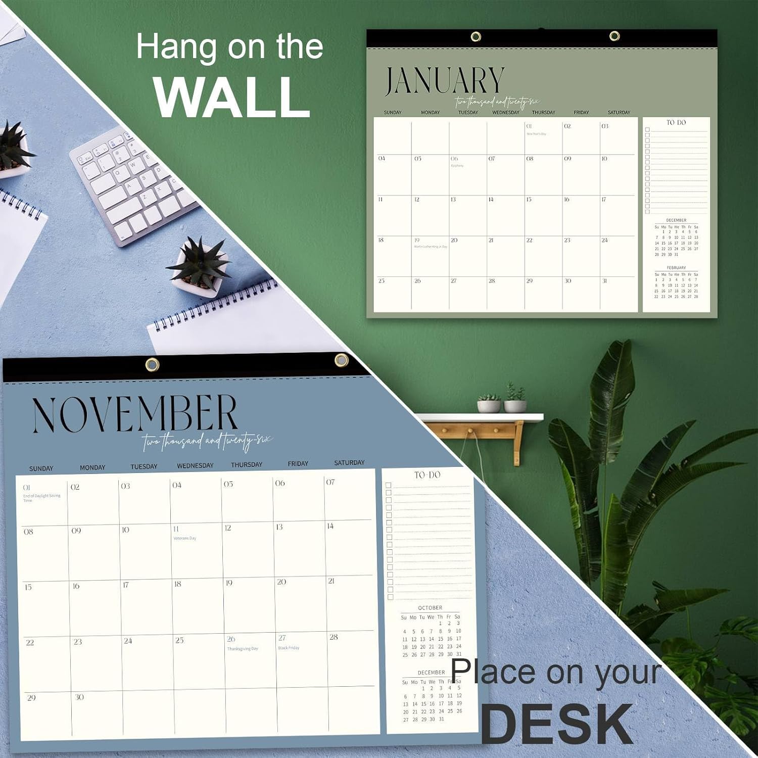 - Functional Desk & Wall Calendar: Designed with versatility in mind, this 2025-2026 monthly calendar comes with pre-drilled holes and a hanging rope, allowing you to easily hang it on the wall or lay it flat on your desk. Its large size (17” x 22”) provides ample room for detailed planning, making it perfect for organizing your schedule at a glance