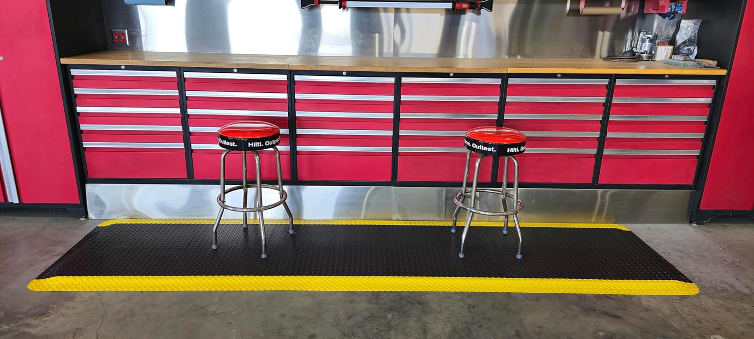 Rhino Mats, American Classic Diamond Anti-Fatigue Mats, Industrial Ergonomic Comfort Standing Mat for Work, Home, Garage, Office, Kitchen or Anywhere (Black/Yellow 1" Thick, 4 FT. x 19 FT.)
