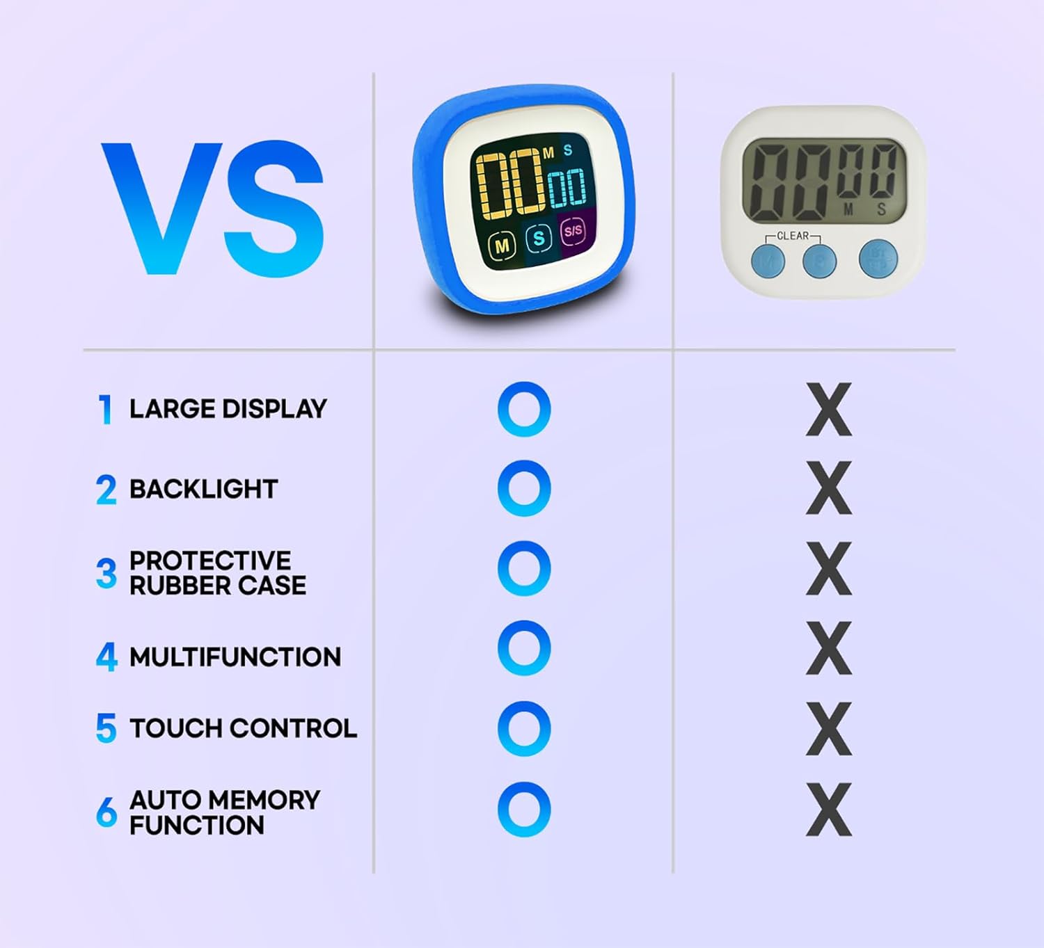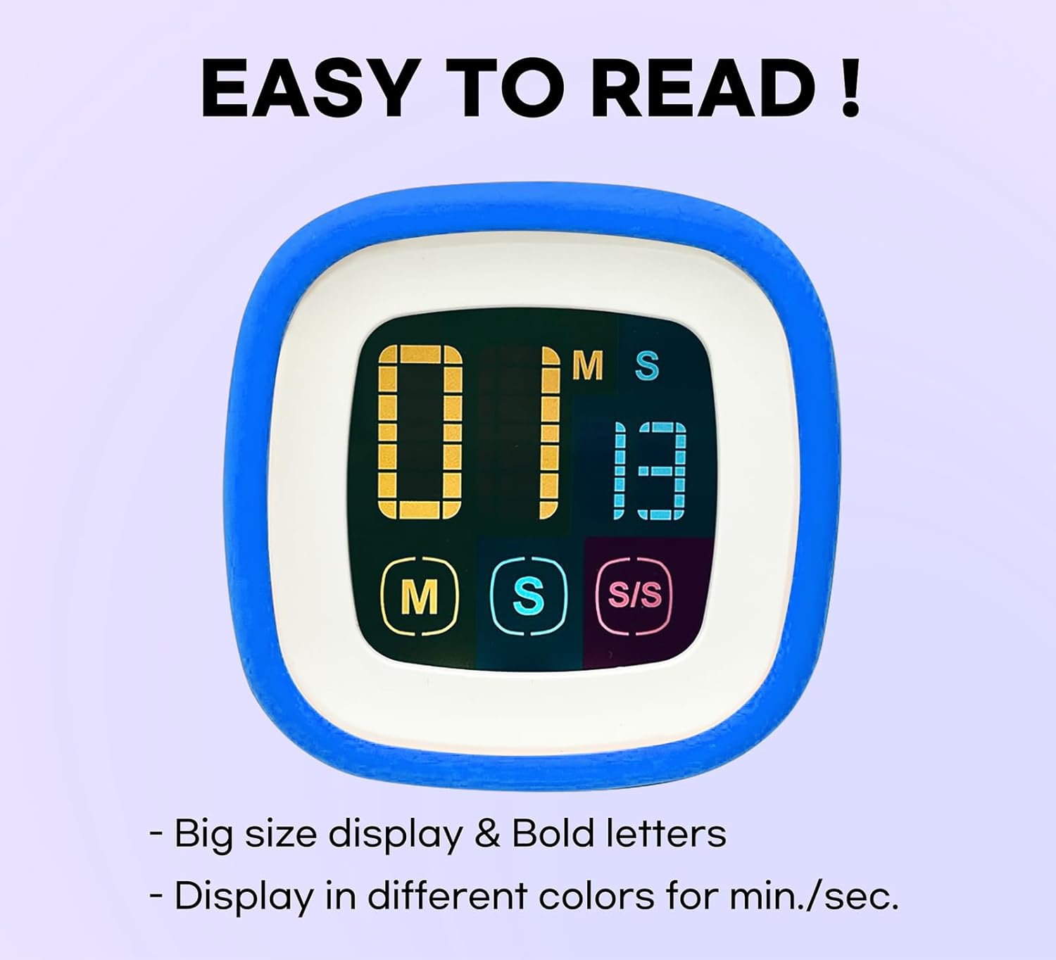 - 【 Easy to read 】 This digital timer features 2.35 inch Large Screen, bold colored digits for Minutes & Seconds and a Bright backlit display. It makes easy to capture the time clearly even from a distance. Especially recommended for kids & seniors.