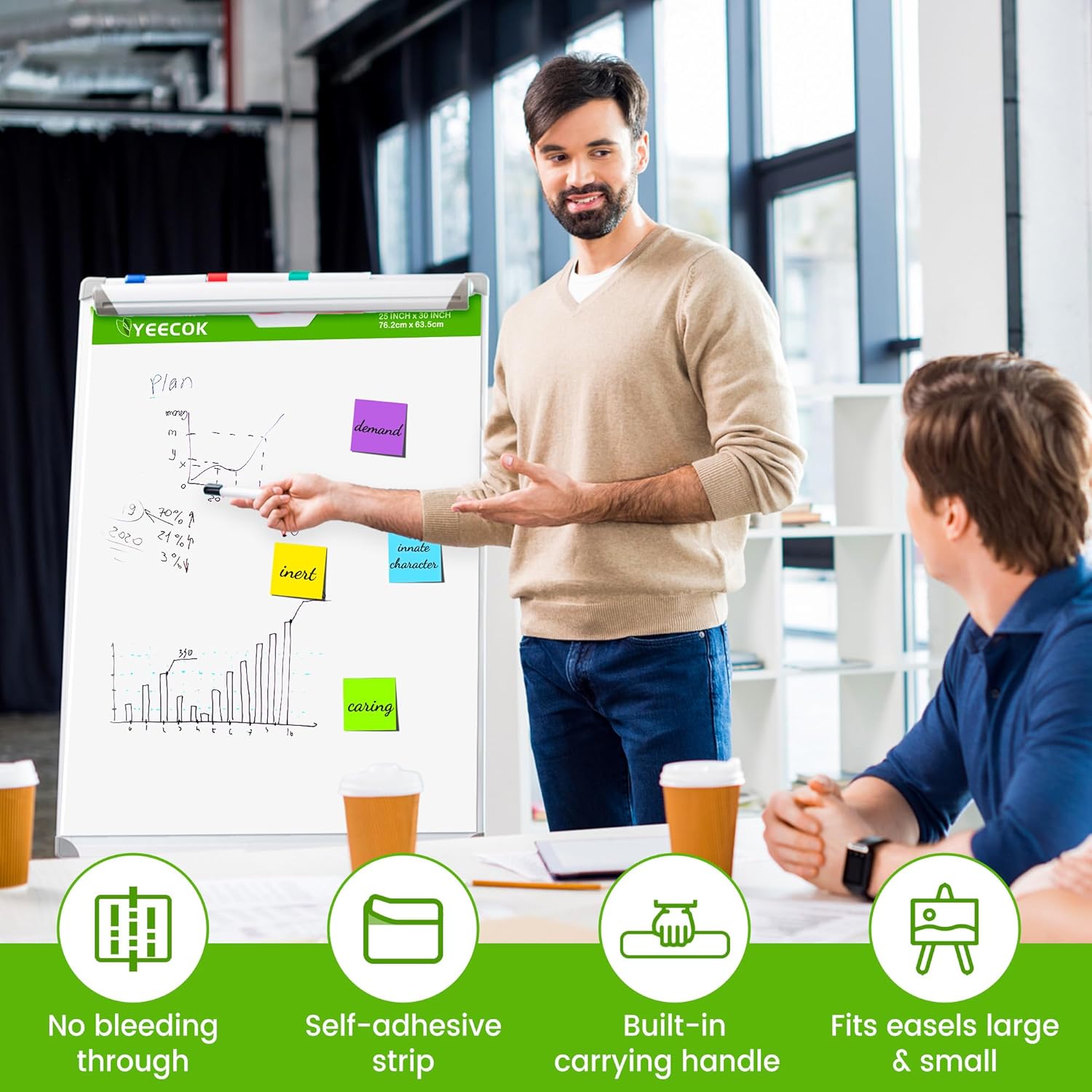 - 【Large Premium Chart Paper】YEECOK flip chart paper is 25 in x 30 in, 30 Sheets/Pad, 4 Pads/Pack, Perfect for Classroom and Meeting room alike.