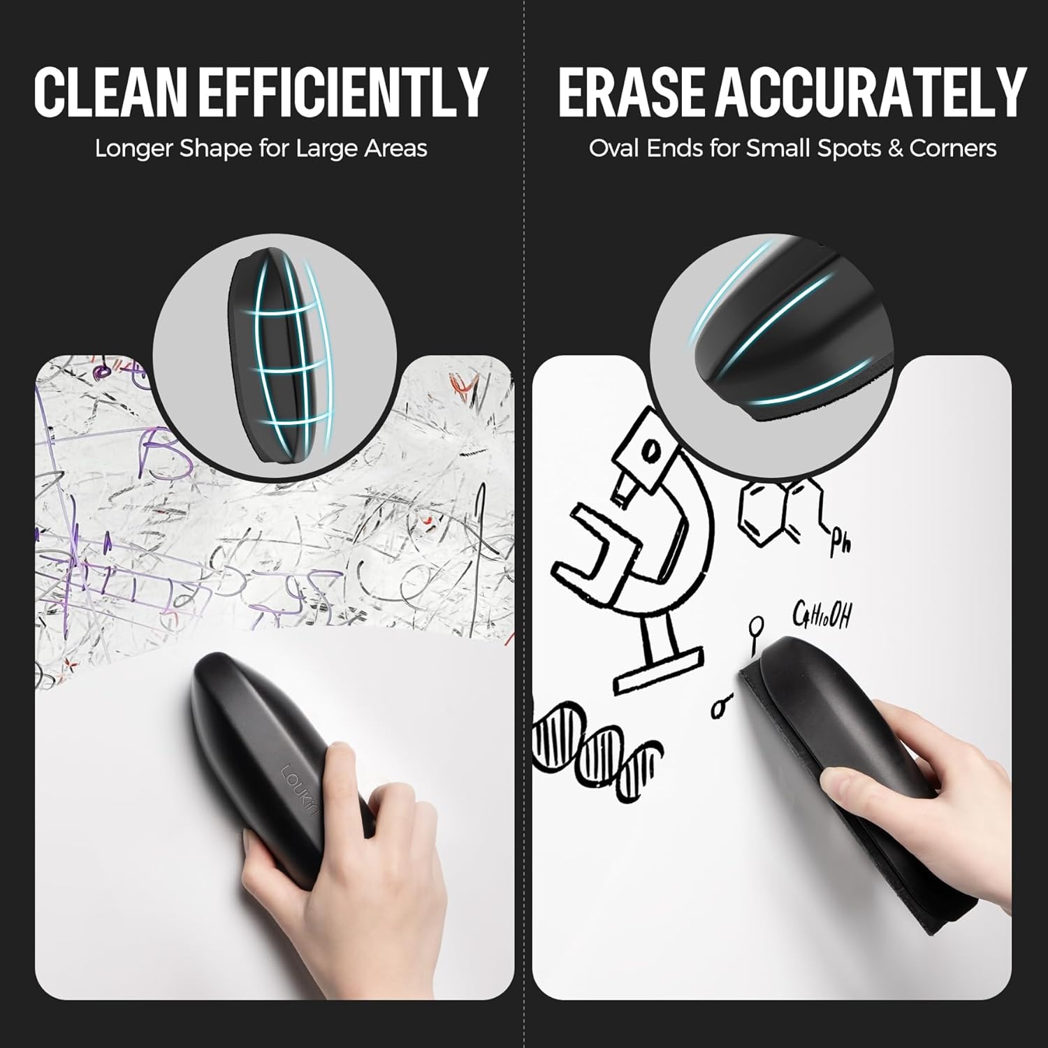 - Daily & Deep Cleaning: The reversible eraser pad offers two different surfaces. The electrostatic fabric side delivers superior friction, perfect for daily dry erasing. The microfiber side works for both dry and wet erasing, and pairs perfectly with Loukin cleaner for deep cleaning