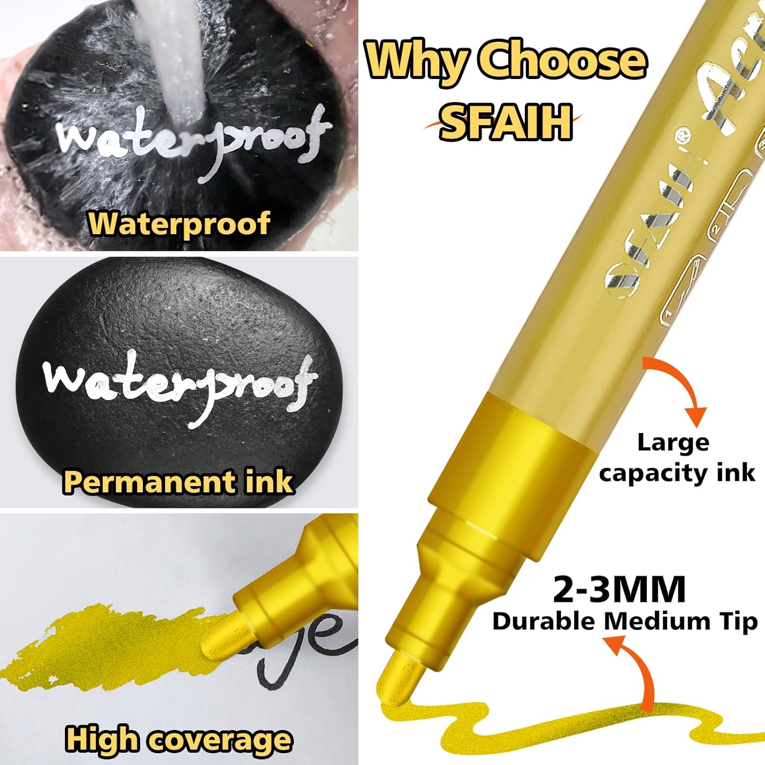 - FOUR COLORS - MINIMALIST LUXURY: SFAIH acrylic paint markers offer a 4-color, 8-pack set. featuring pure white, classic black, luxurious gold, and shimmering silver—a perfect color combination. The bold contrast of black and white, paired with dazzling metallic markers, makes every stroke radiate artistic charm, adding unique brilliance to your creative projects.