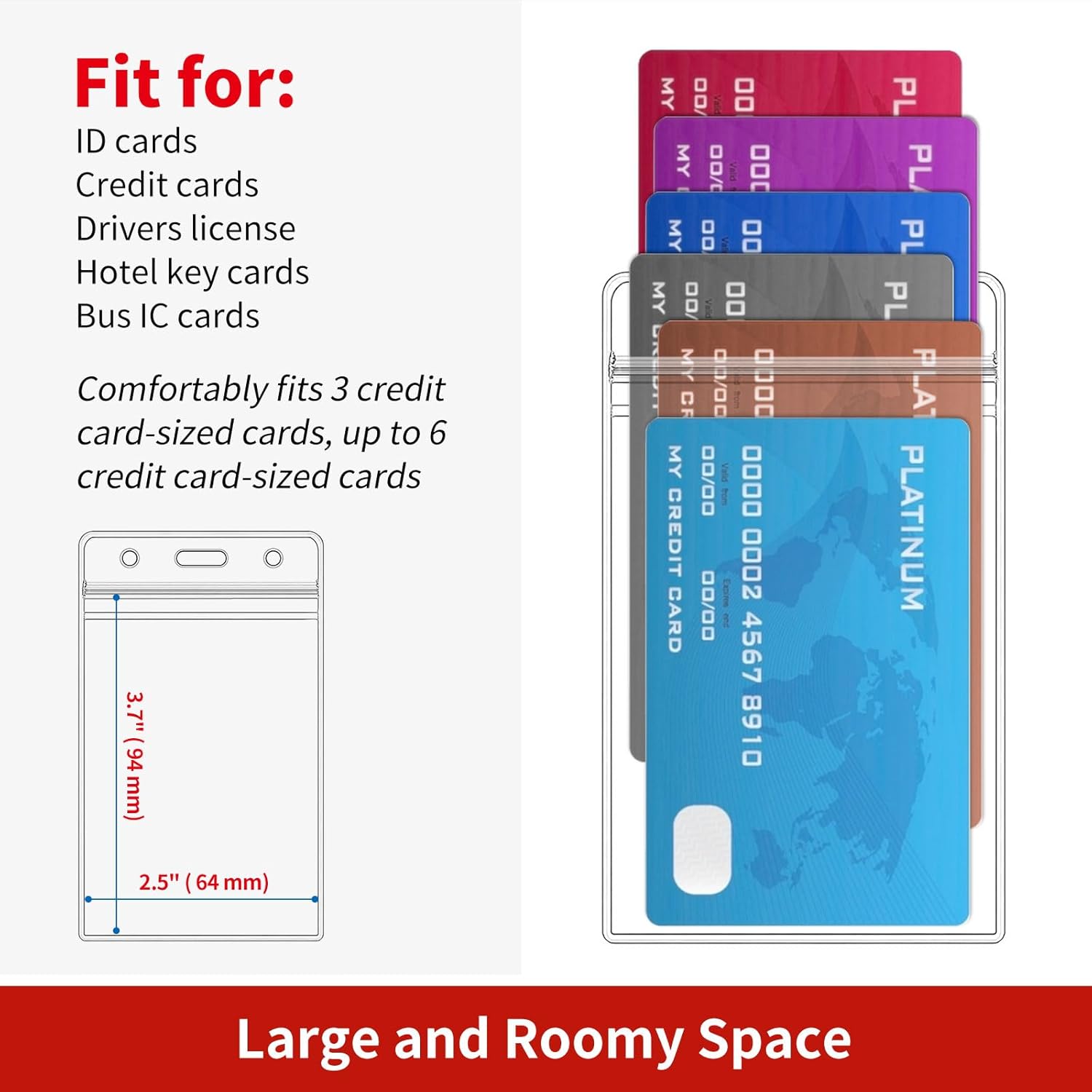 - Large and Spacious Space: Our badge holder has external dimensions of 4.53" L x 2.76" W, with available internal dimensions of 3.7" L x 2.5" W. Perfect for organizing your cards