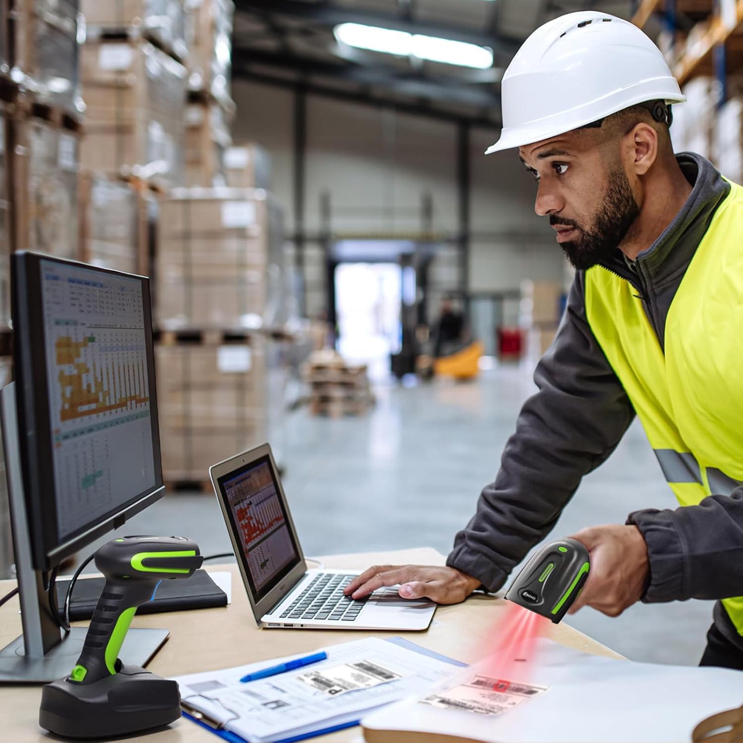 - 3-in-1 Connections & Widely Compatible: Eyoyo wireless barcode scanner can connect via 2.4G wireless & 6.0 Bluetooth & USB wired. It can be connected to a variety of devices, such as smartphones, computers, POS, iPhones, ipads, and laptops. In addition, it is also compatible with various operating systems, such as Windows 7/8/10/XP, Mac OS, iOS, android, and Linux. Note: There is no need for a wireless dongle, the dock connects to the device and enables wireless connection