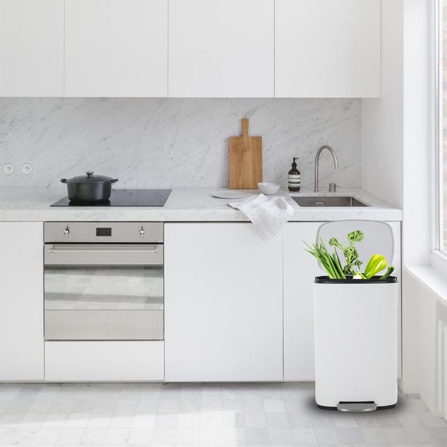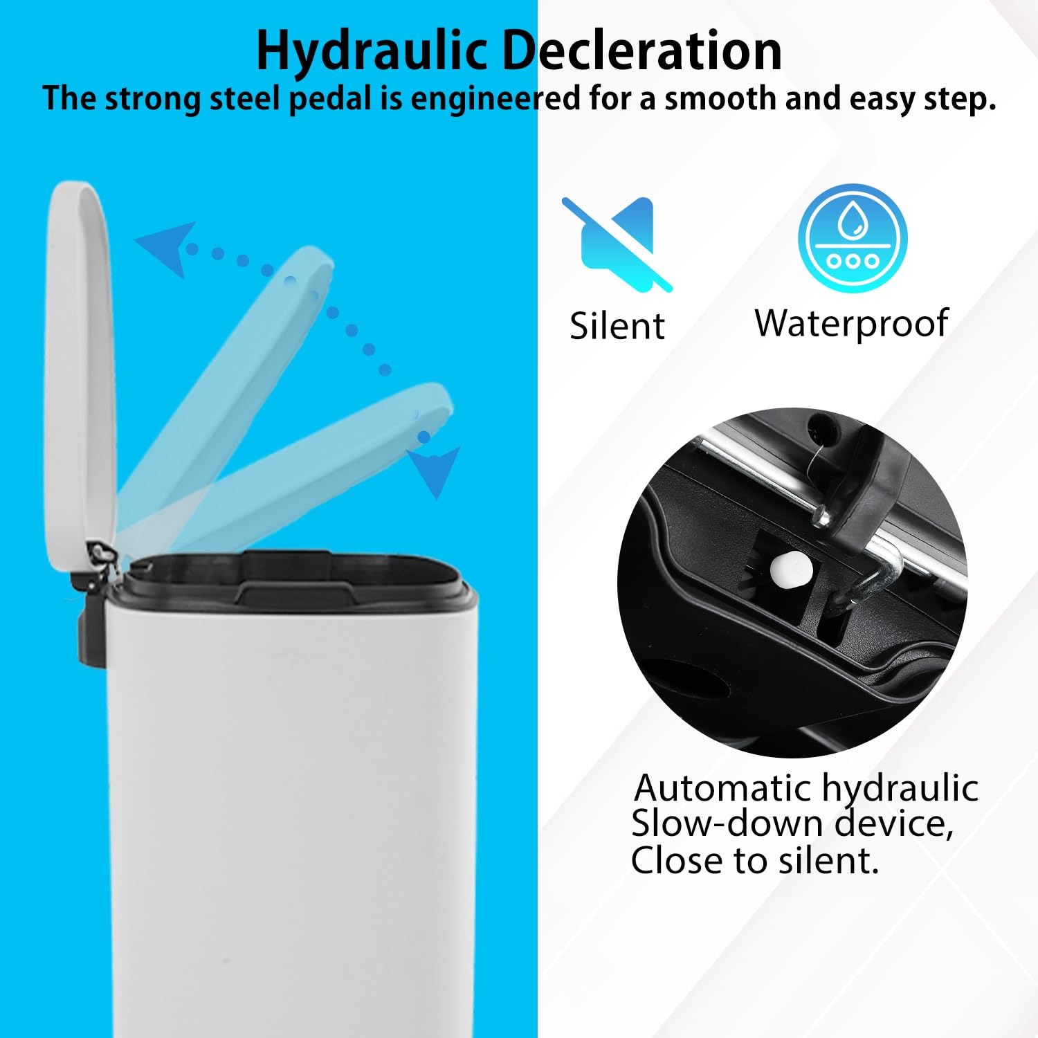 - Hand Free & Odor Control : Trash can with foot pedal allows you to dispose of trash without dirtying your hands or physically touching the trash can lid. The tight-fitting lid reduces odors, keeping your space fresh and the surrounding area smelling fresh and pleasant.