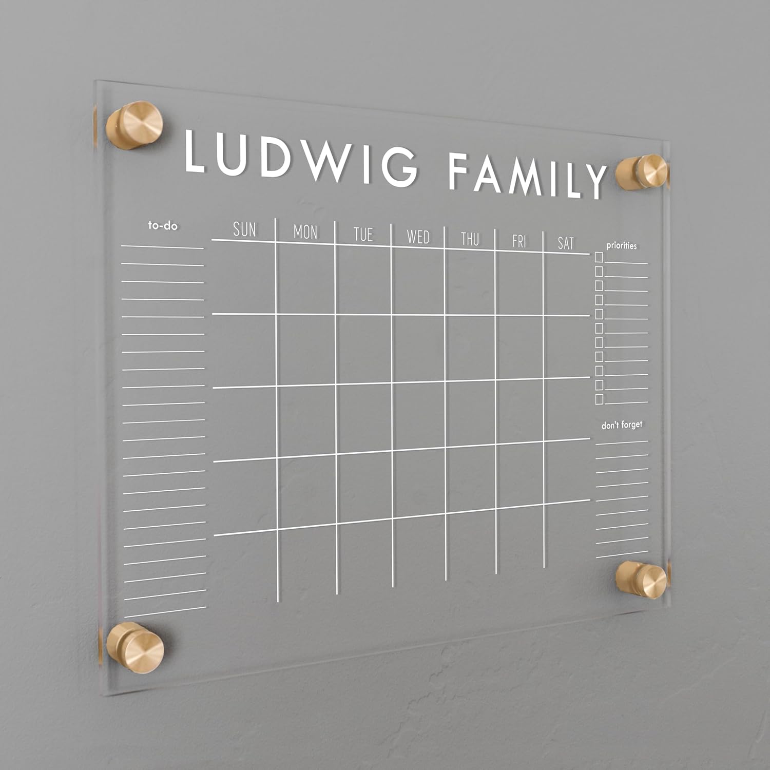 Personalized Clear Acrylic Calendar for Wall, Calendar Whiteboard for Wall, Dry Erase Wall Calendar, Wall Calendar Organizer System for Home (Block, White, 14"W x 11"H)