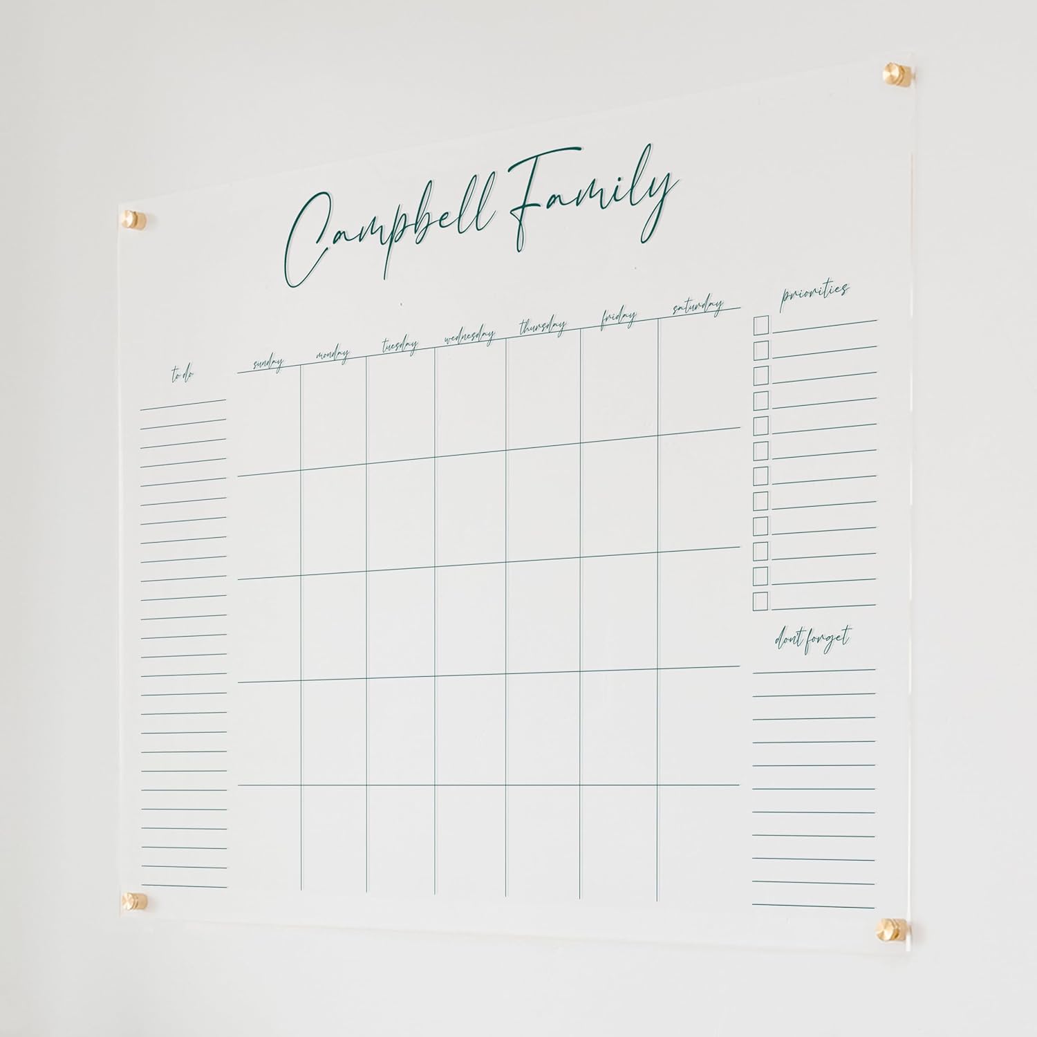 Personalized Clear Acrylic Calendar for Wall, Calendar Whiteboard for Wall, Dry Erase Wall Calendar, Wall Calendar Organizer System for Home (Cursive, Jade, 47.5"W x 36"H)