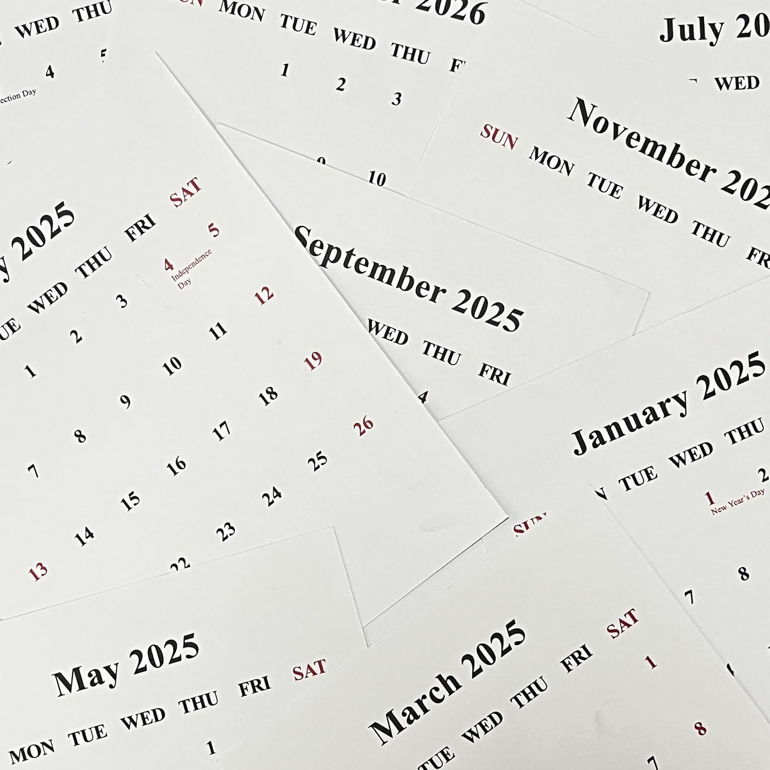 - Simple design, easy to use - calendar paper contains 26 months, double-sided printing, calendar paper and acrylic sheet inserted into a "U" shaped beech wood base for use.