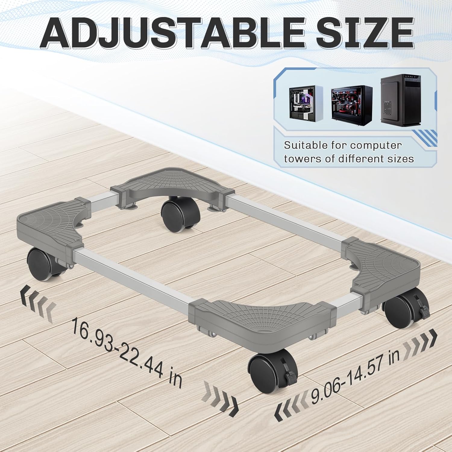 - Adjustable Length and Width: The pc stand length can be adjusted from 16.93 to 22.44 inches, the pc holder width can be adjusted from 9.06 to 14.57 inches, suitable for most sizes of computer pc towers under desk.