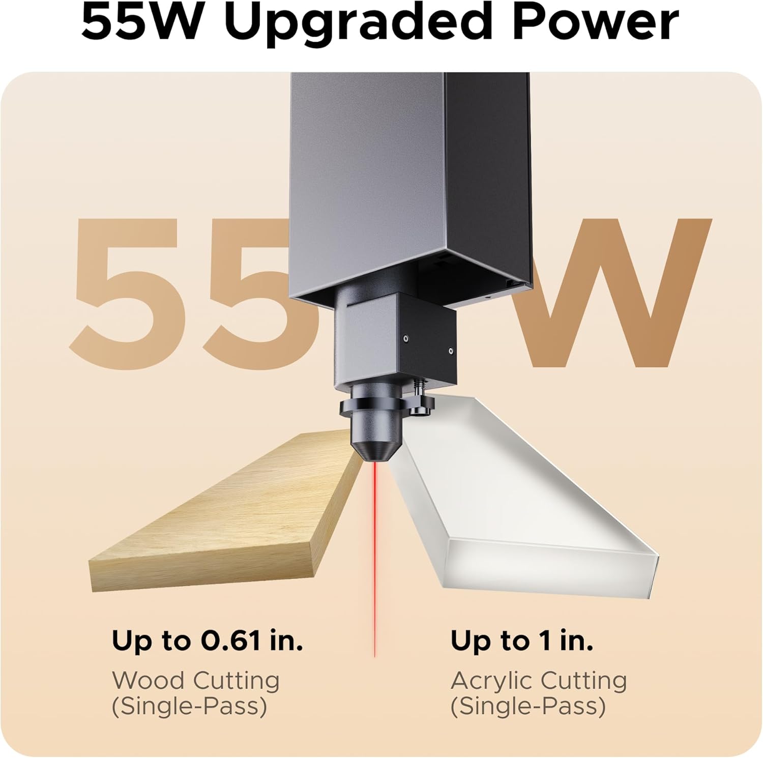- Desktop DIY Lasering: OMTech's 55W Polar Lite desktop laser engraver engraves, cuts, and shapes wood (up to 0.61"), acrylic (up to 1"), leather, fabric, cardboard, & coated metal, turning your ideas into reality at speeds up to 500 mm/s