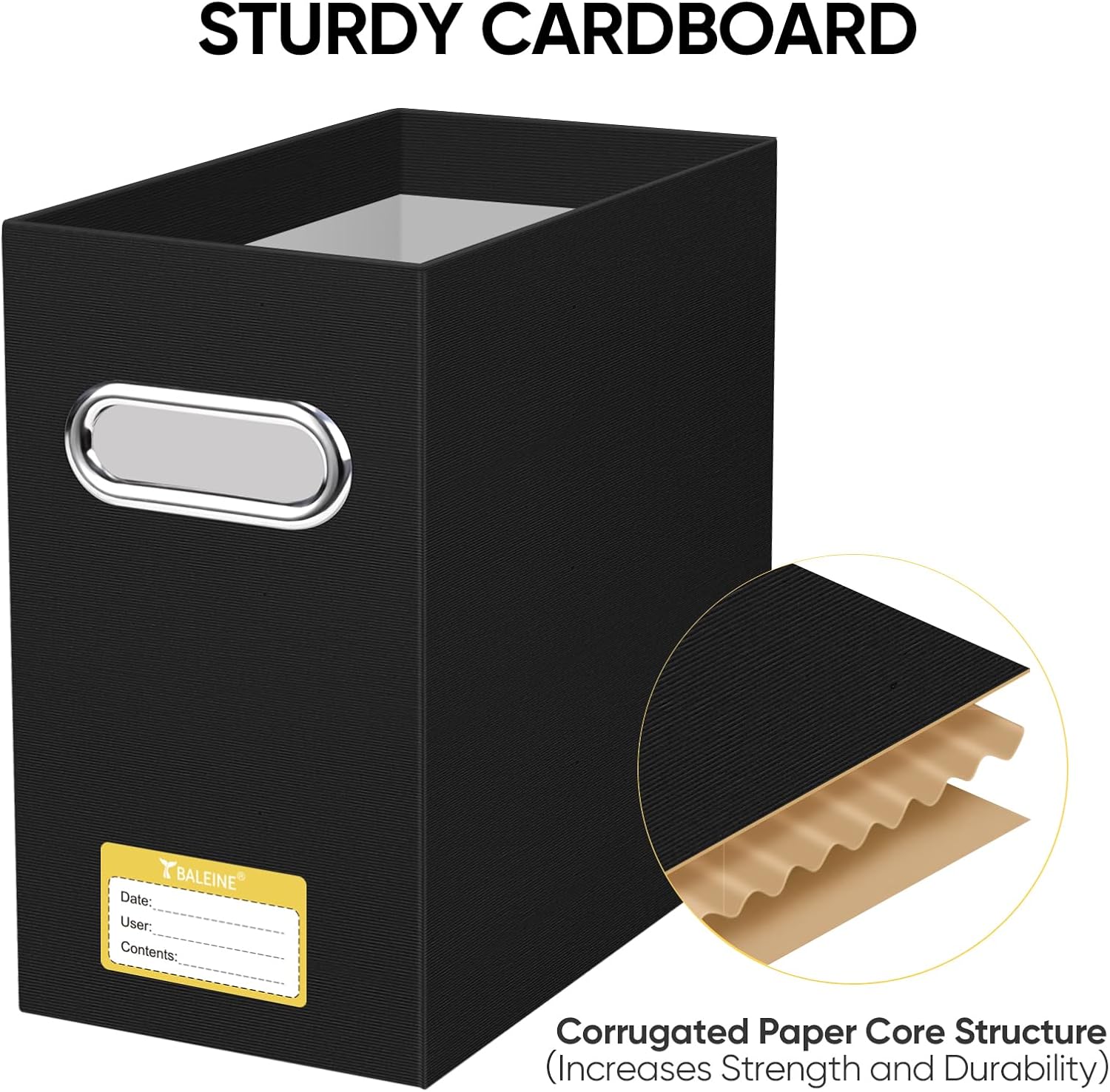 BALEINE File Organizer Box, Cardboard File Folder Organizer with Handle for Letter Size, Portable Collapsible Hanging Filing Box for Home Office Document Storage (4 Pack, Black)