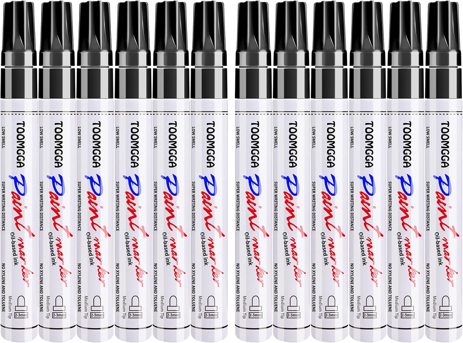 - Premium Quality: Each black paint pens paint markers is independently tested, selected, and packaged in individual heat shrink film. Before use: Face tip upright,push against finger. Re-cap and shake. Press tip on surface several times