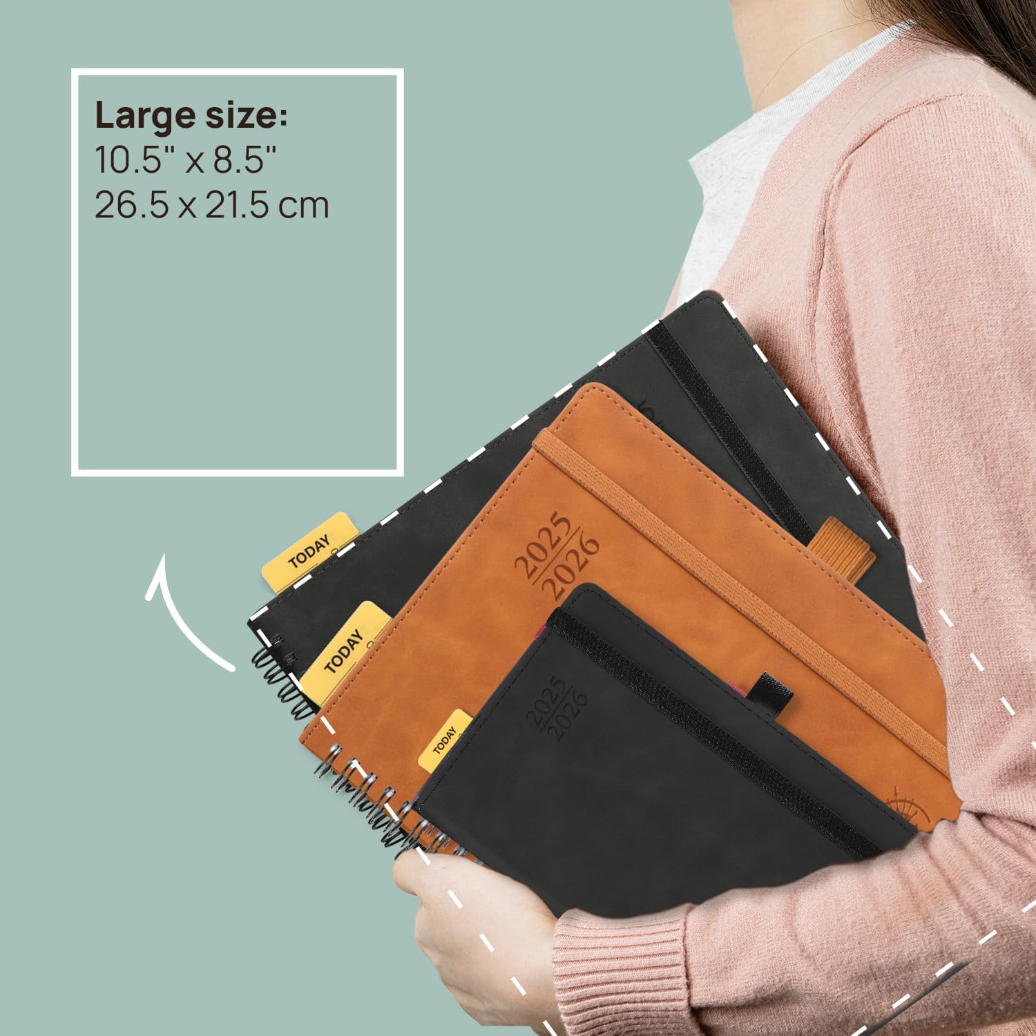 POPRUN Planner 2025-2026 Weekly Planner Notebook (Large 8.5''x 10.5'') Academic Calendar (JUL.25 - JUN.26) Appointment Book with Monthly Tabs, Spiral Soft Cover, Inner Pocket, 100 GSM - Petrol
