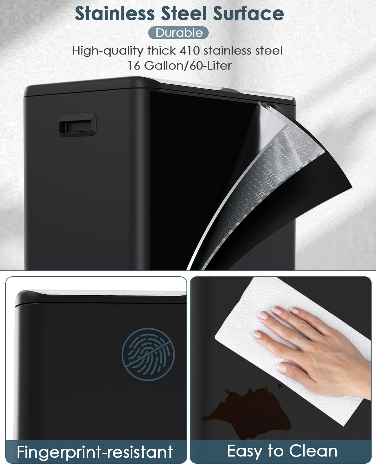 Arlopu 16Gal Dual Trash Can w/2 Built-in Box for Odor Control, Hands-Free Kitchen Garbage Bin, Recycle Waste Dustbin, Soft-Close Lid, 2 Buckets,Foot Pedal, Side Handle, Airtight,for Home Office