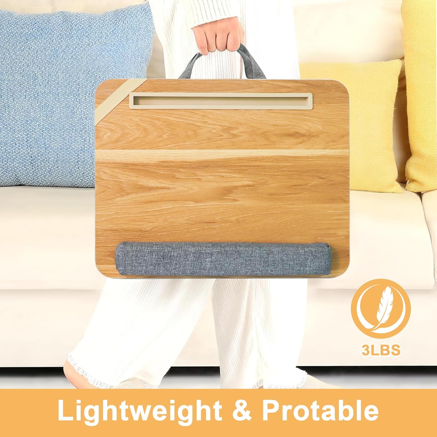 Lap Desk for Laptop Stand with Cushion, Adults with Storage Fits Up to 15.6in, Combines Features Bag and Pillow Table by Travel, Portable Workstation for Home College Office(Light Brown)