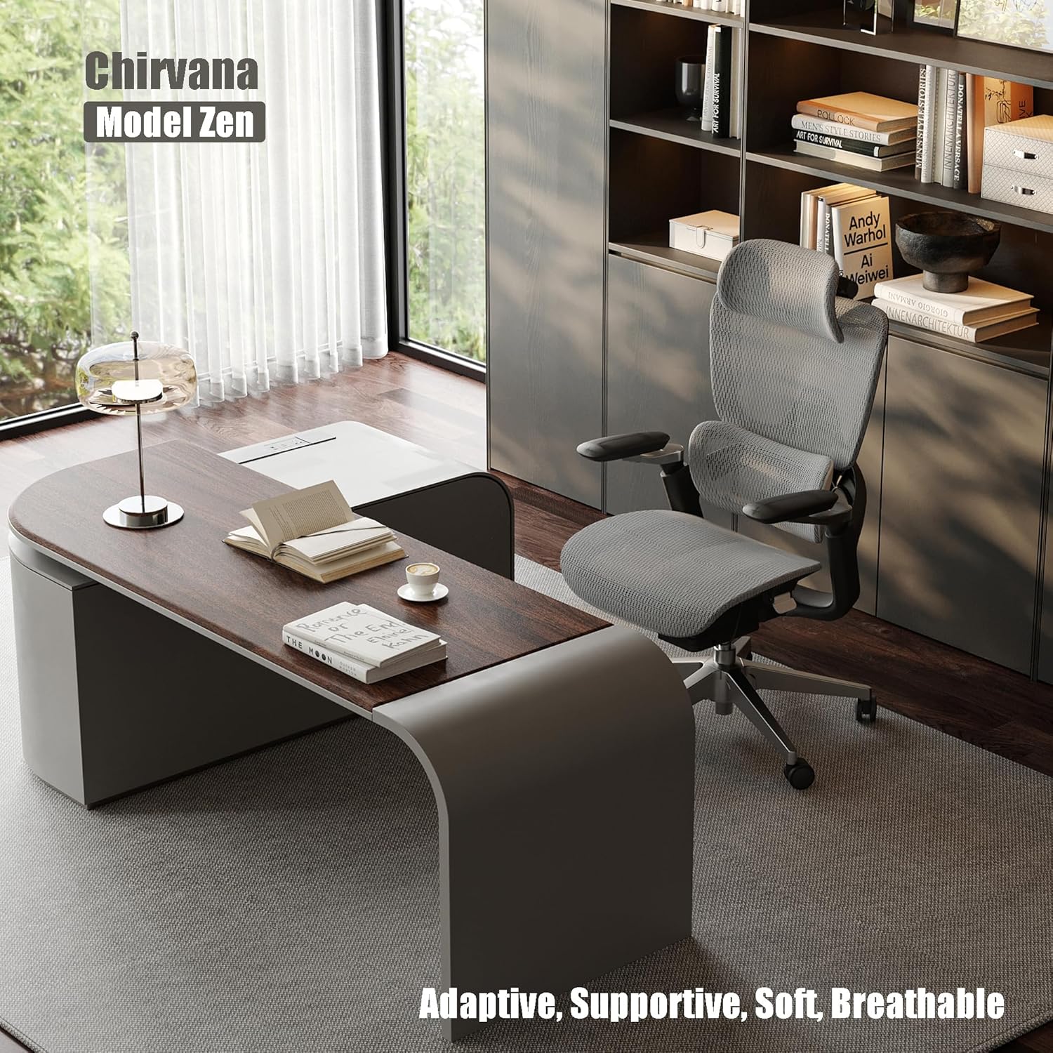 Ergonomic Office Chair, Mesh Home Office Desk Chair with Adjustable Lumbar Support, Gaming Chair with Headrest, 5D Armrest,90-130°Tilt, BIFMA Certified, Model Zen (Grey)