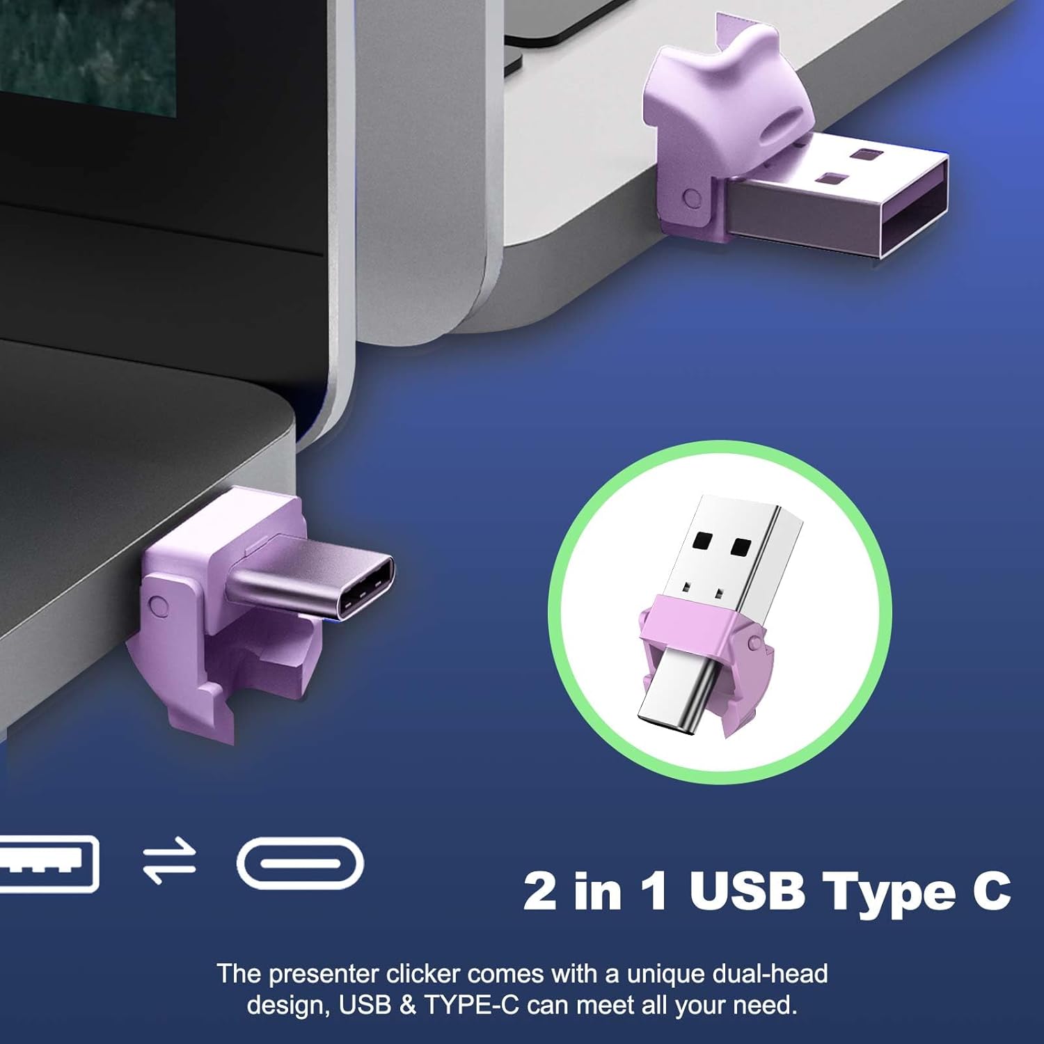 QUI Presentation Clicker for PowerPoint, RF 2.4GHz USB C Wireless Presenter Remote with Volume Control, PowerPoint Clicker Slide Advancer for Mac, Windows, Laptop, Keynote