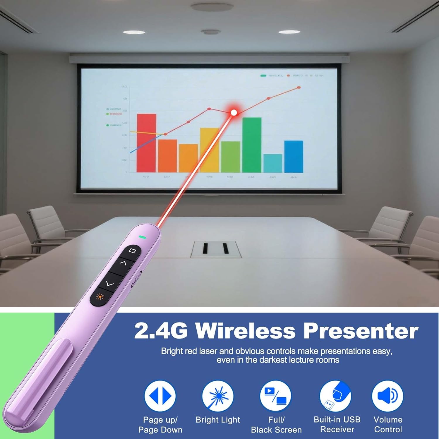 - 【BRIGHT RED LIGHT】 This clicker for PowerPoint presentations can easily highlight important areas of the presentation with a bright red beam so that your audience will not miss any key points. It is suitable for all kinds of backgrounds and is clearly visible even in large auditoriums