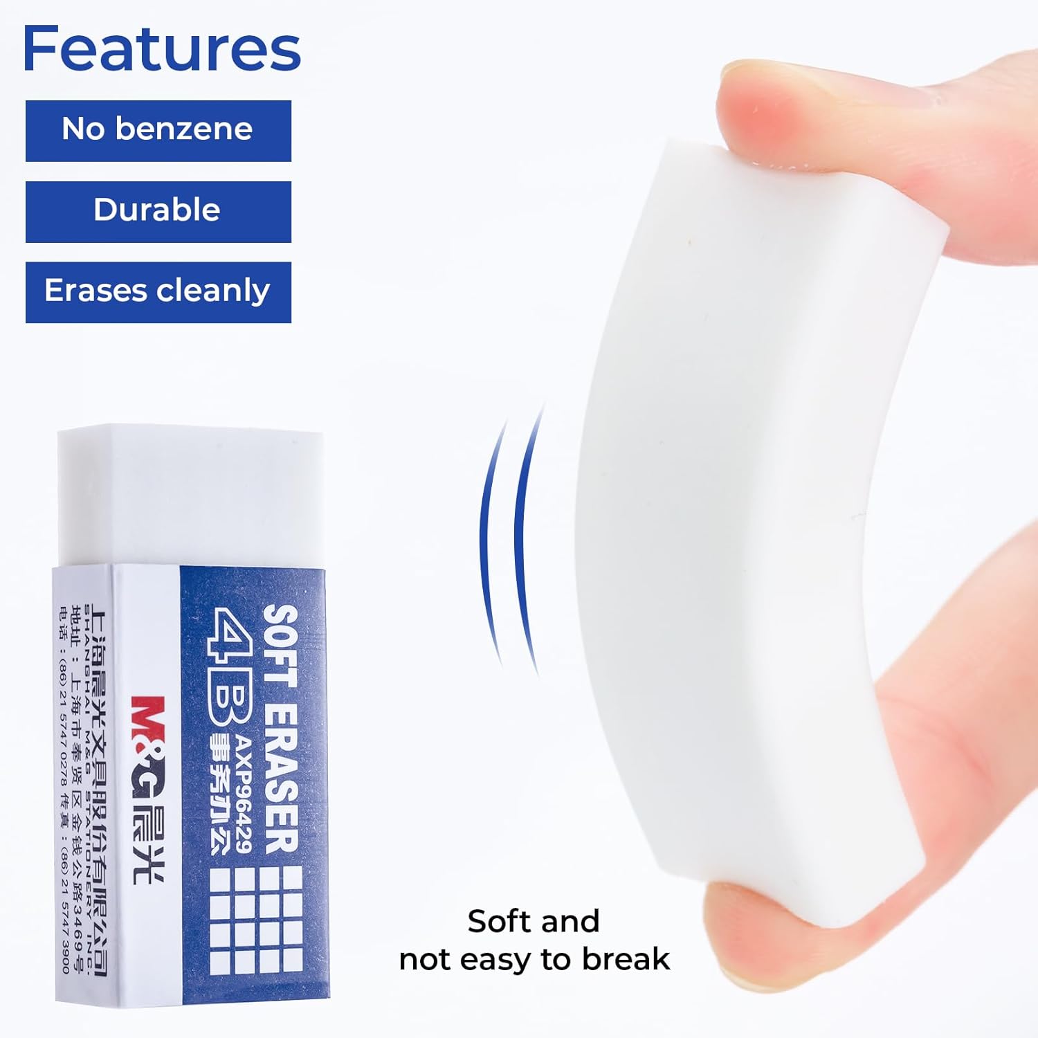 - Efficient Cleaning Design: This white eraser is specially designed for efficiently removing pencil marks, leaving no residue behind and keeping the paper clean and neat. It's the ideal choice for everyday writing and drawing.