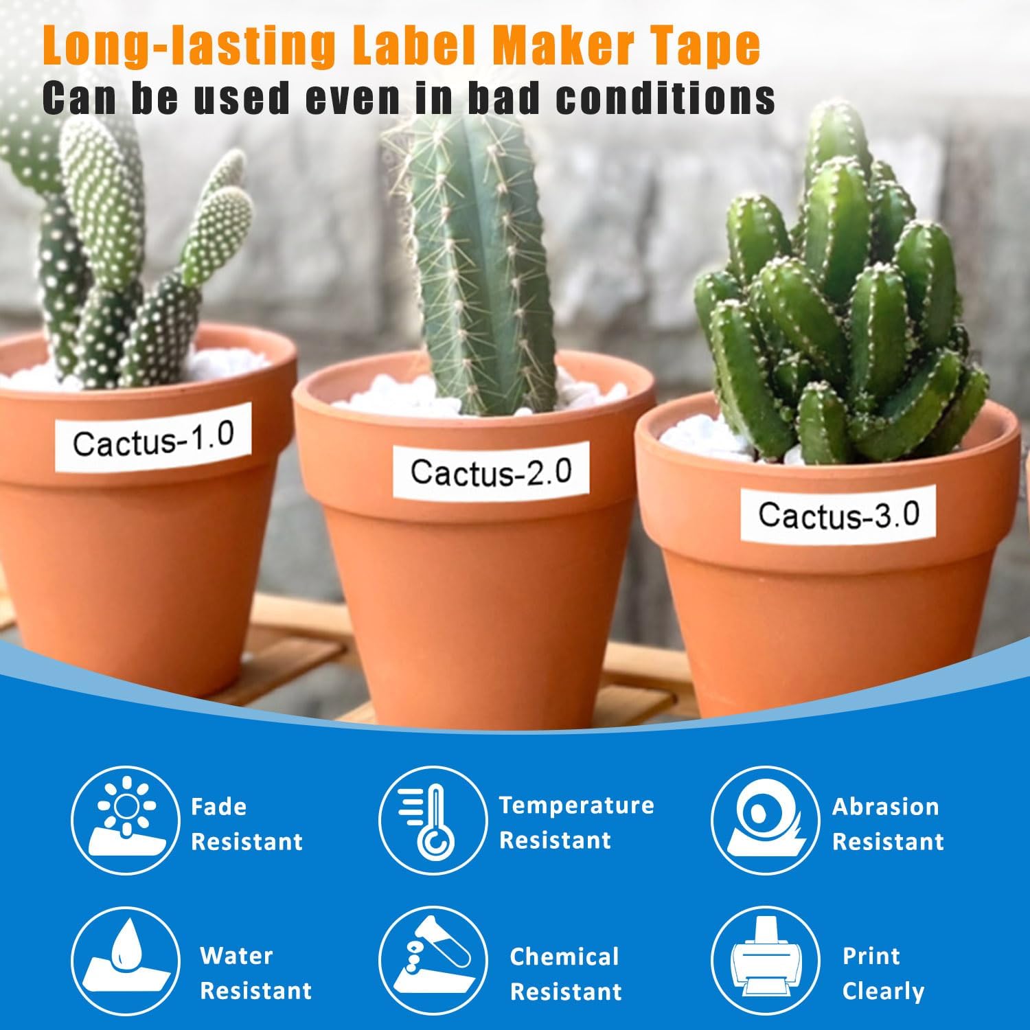 - Size: Width - 1/2 inch (12 mm 0.47 inch), Length: 26.2 feet (8 meter) each, Color: black on white P Touch label maker tape