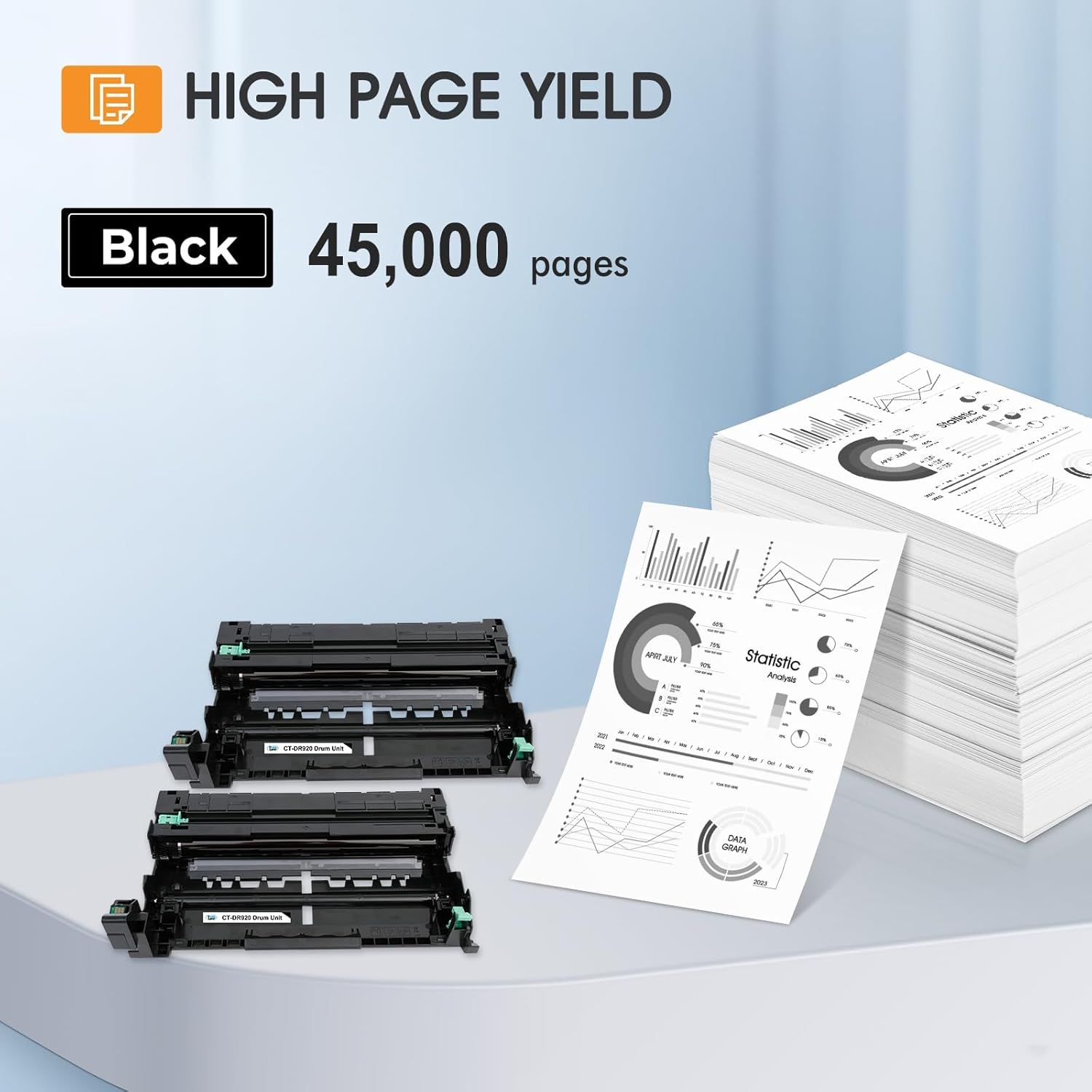 - Page Yield: Up to 45,000 pages per dr920 drum black high yield at 5% coverage (Letter/A4)