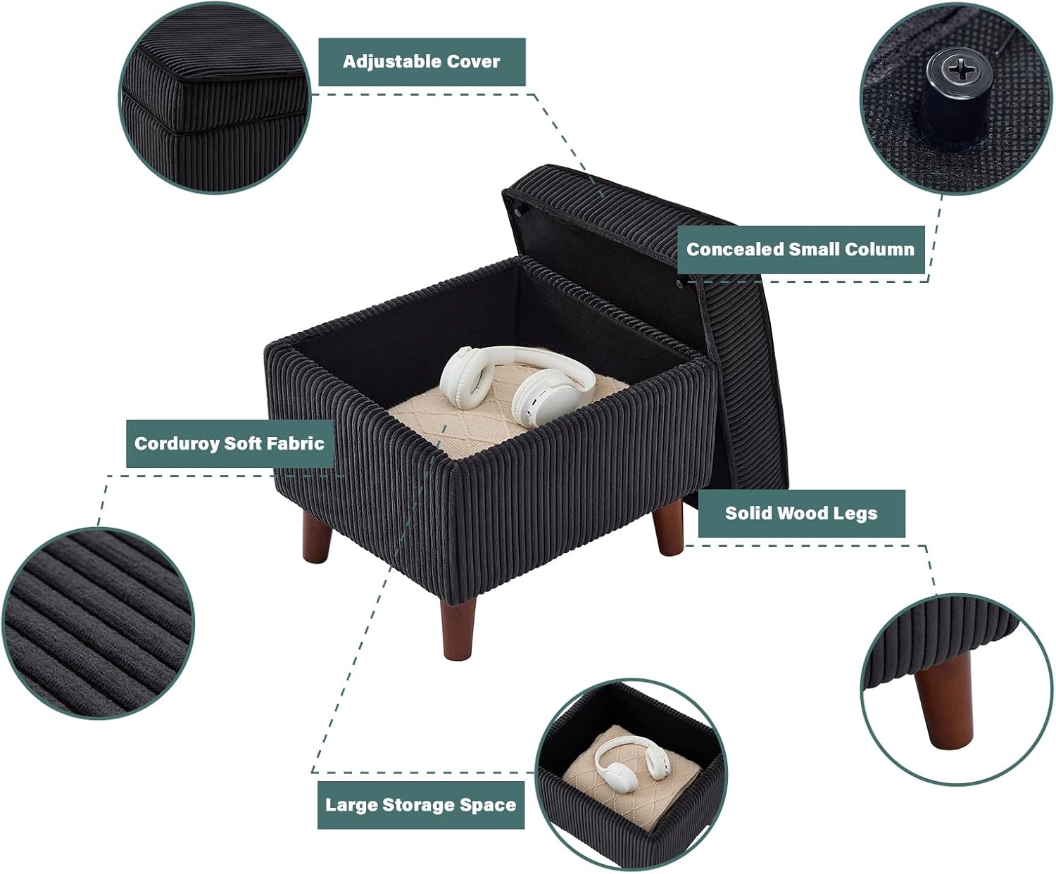 - 【Ottoman with Storage】 Lift the lid to reveal a spacious storage compartment, ideal for organizing blankets, books, or other essentials. This ottoman combines practical storage with stylish design, keeping your space neat and clutter-free.