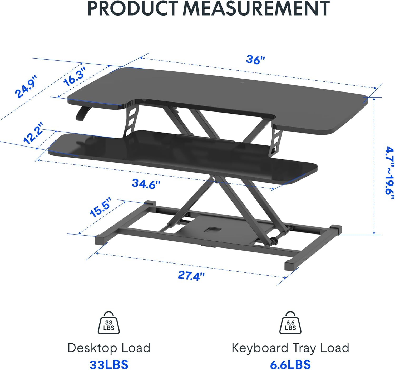 - rgonomic Comfort: This converter is designed with your well-being in mind. Featuring a quick-adjust mechanism, it allows seamless transitions between sitting and standing, promoting a healthy work routine.