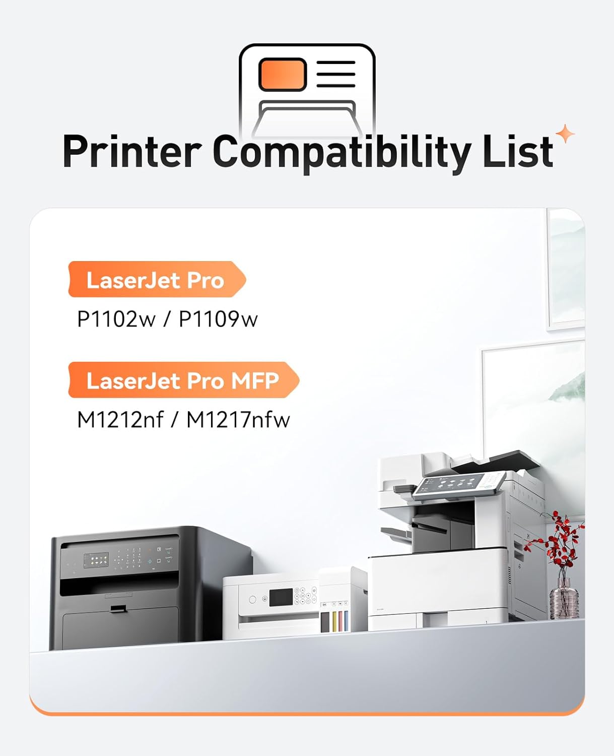 - Compatible Printer: Compatible with HP LaserJet Pro MFP M1212nf M1217nfw P1102w P1109w P1102 P1109 M1212 M1217 LBP6000 MF3010 P1005 P1006 P1007 P1008 Printer