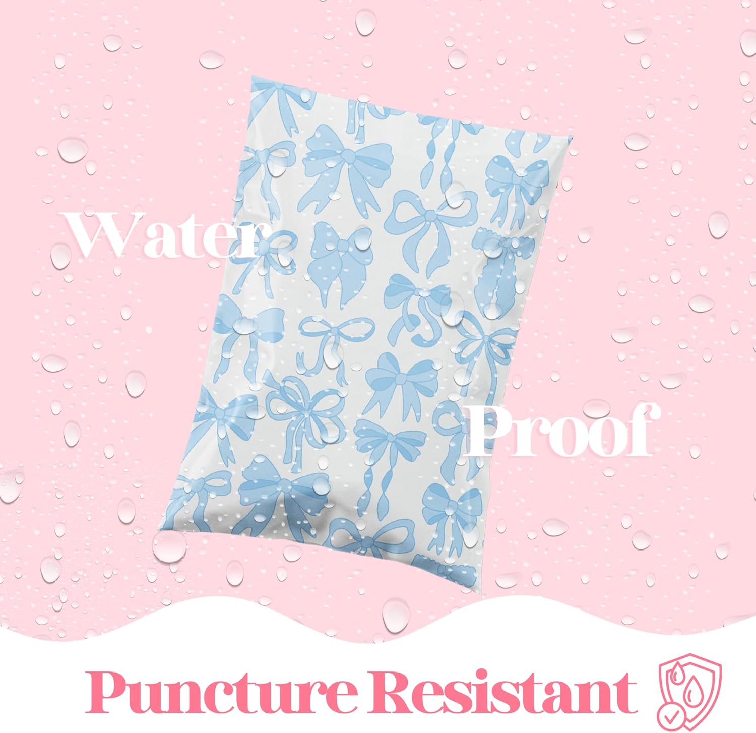 10x13 Designer Poly Mailer 100 Pack Heavy Duty Waterproof Self Seal Shipping Bags for Small Business Large Mailing Envelopes Bulk Tear Resistant Packaging Blue Bows