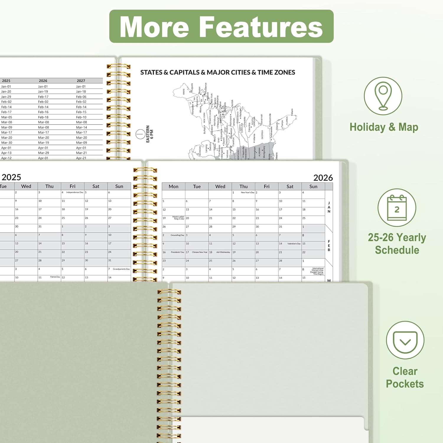 SUNEE 2025-2026 Appointment Book, Quarter-Hourly, Weekly & Monthly - from July 2025 to June 2026, 8.5"x11" Academic Planner, Flexible Cover, Note Pages, Pockets, Bookmark, Spiral Binding, Sage Green