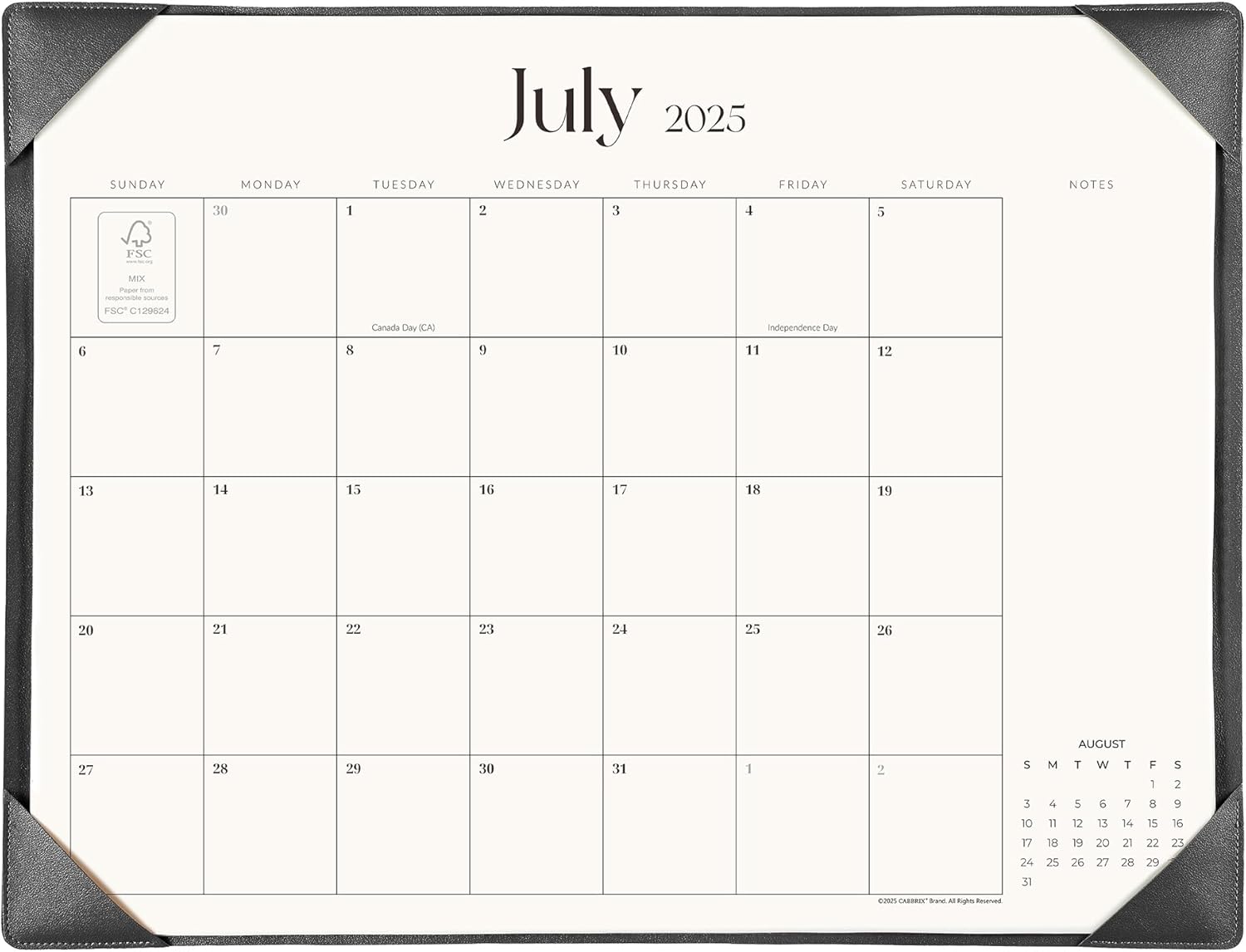 Simplified Desk Calendar 2025-2026 with Desktop Mat, Cabbrix Large Desk Pad Calendar 21" x 16-1/2" Covering July 2025 to June 2026, Desk Blotter Calendar 2025 for Home School and Office (Black)