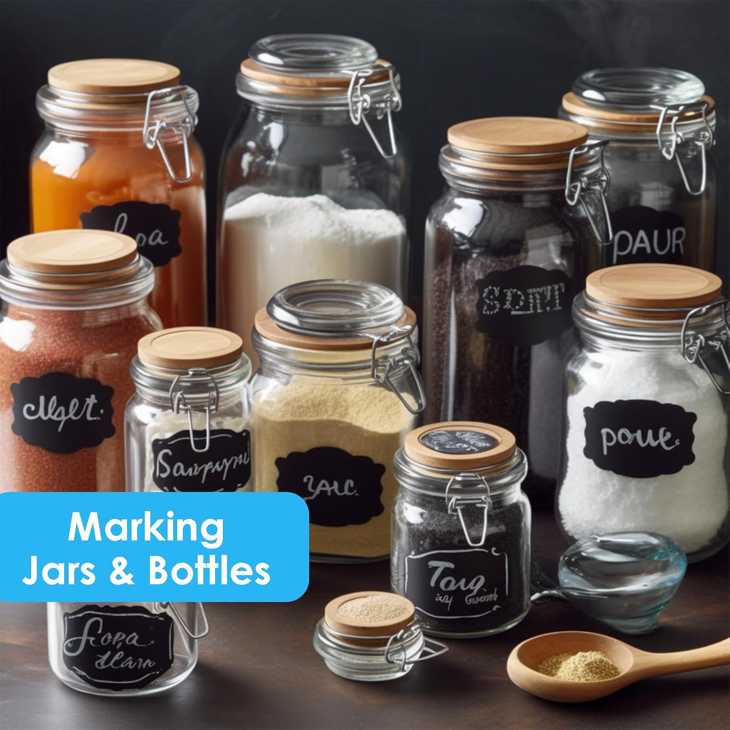 - CUSTOMIZABLE FOR ANY PURPOSE: Ideal for organizing pantry items, spice containers, and storage bins; write with chalk or a chalk marker for clear, readable labels; wipe clean and reuse; perfect for jars, storage bins, and more