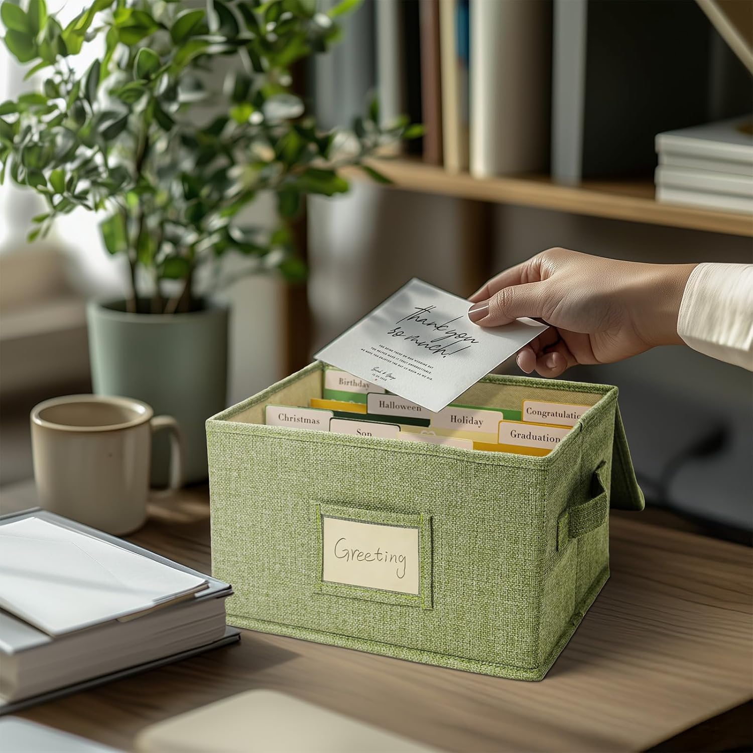 Vienrose Greeting Card Organizer Storage Box with 20 Removable Dividers, 84 Self-stick Labels, Perfect for Photos, Envelopes, Scrapbooking, Paper, Stickers Holder 1 Pack Grass Green