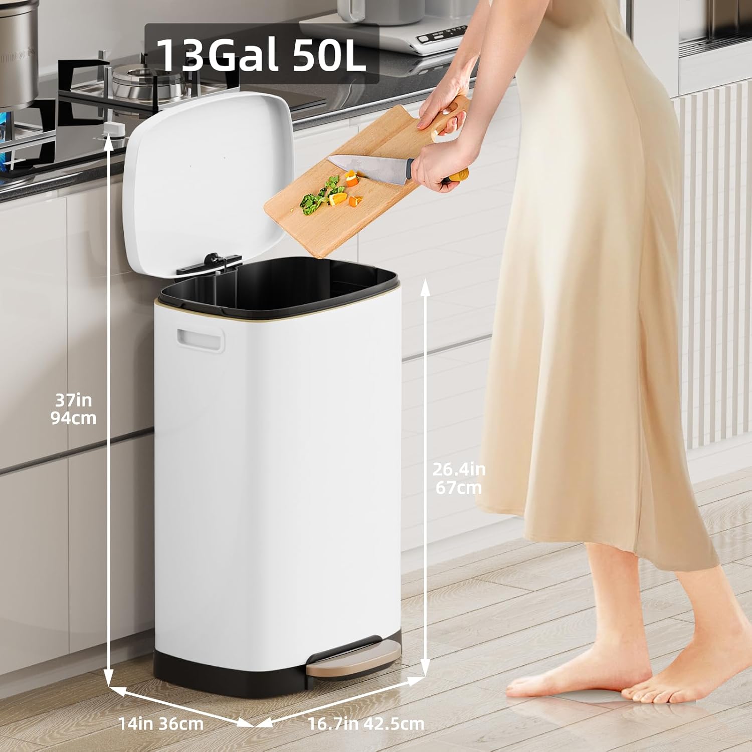 - đźš® Large Capacity & Odor Lock Technology: 50L (13 Gallon) extra-large capacity reduces frequent trash runs, perfect for busy kitchens. Sealed lid with odor-blocking design traps smells, keeping your space fresh and clean.