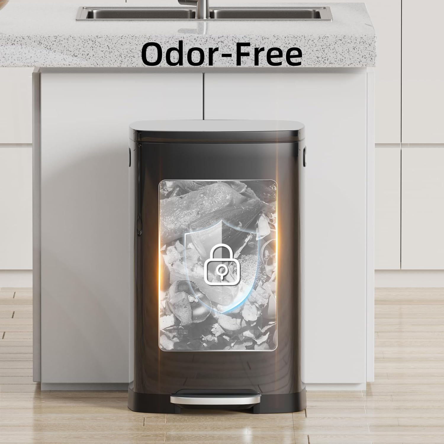 - đźš® Large Capacity & Odor Lock Technology: 50L (13 Gallon) extra-large capacity reduces frequent trash runs, perfect for busy kitchens. Sealed lid with odor-blocking design traps smells, keeping your space fresh and clean.