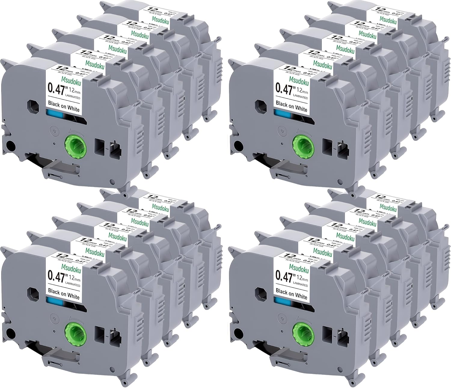 - Package Includes: 20-pack compatible with brother p touch label maker tape 12mm 0.47"black on white tape. Size: 1/2" (width) x 26.2 ft (length) Color: Black on White TZe TZ Tape