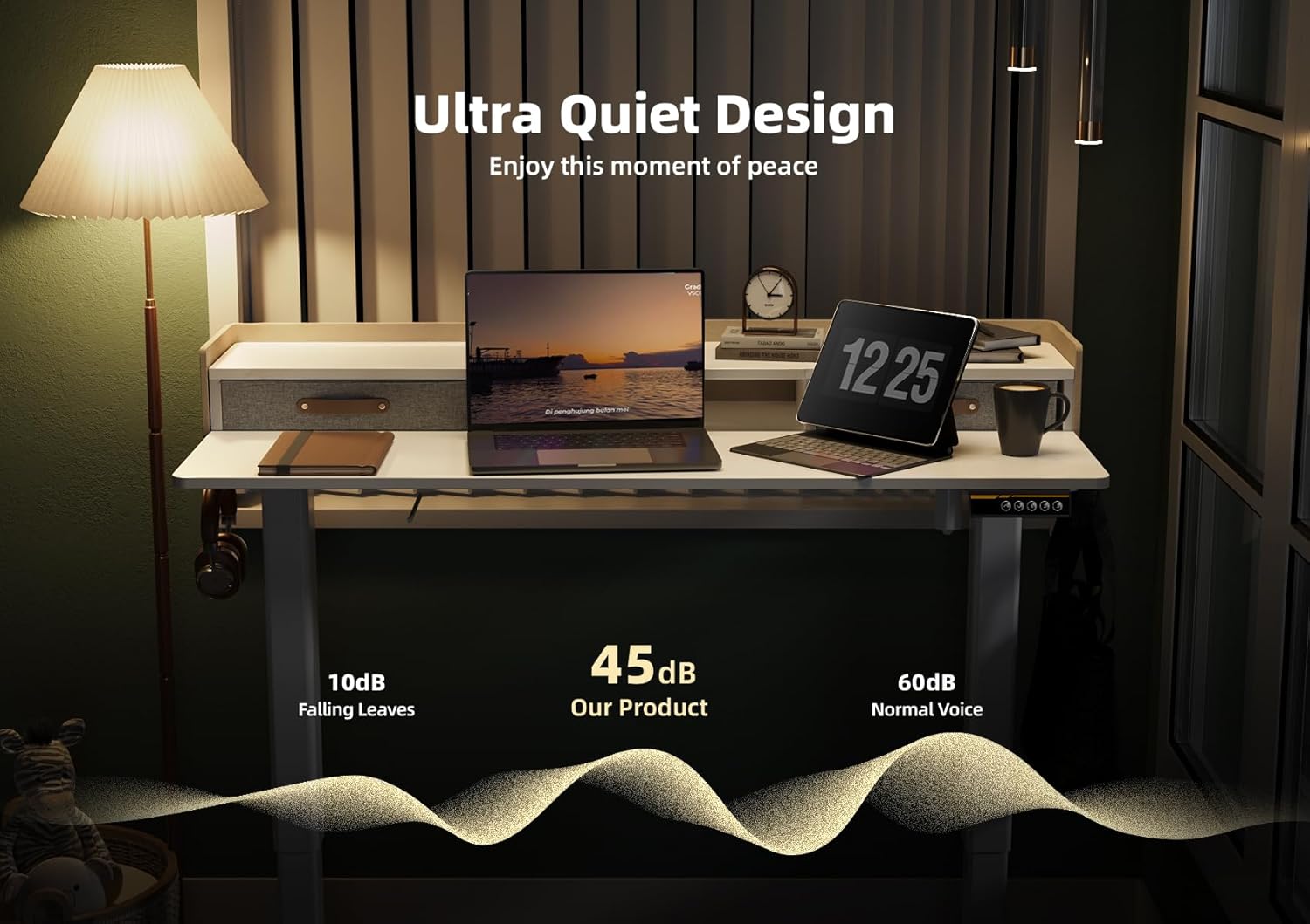 - Smooth Height Adjustment: Freely select adjustable standing desk height, from 28.35" to 46.46". Save your favorite three settings and smoothly switch the electric standing desk between them.