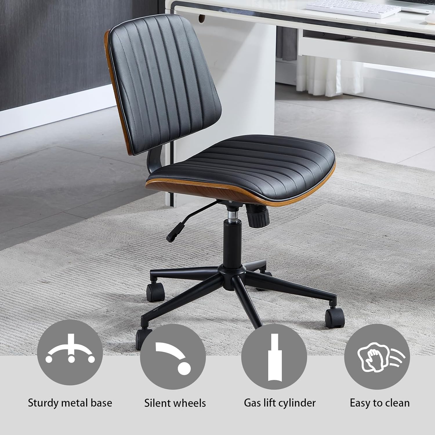 - 【Sleek & Modern Appeal】Crafted with premium PU leather and a stylish walnut backrest, this armless office chair brings modern charm and ergonomic support, perfect for home offices, study rooms, or even a cozy reading nook.