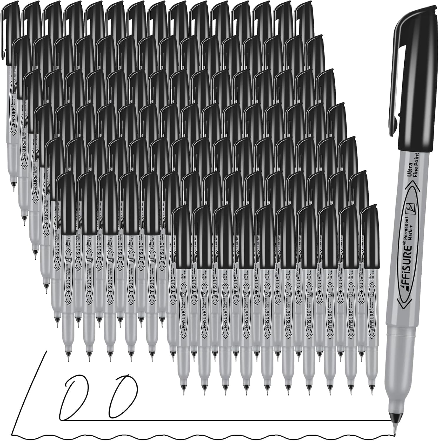 - PERMANENT MARKERS BULK: Reaches 100 pack Ultra Fine Point Black Permanent Marker set, and the black sufficient ink of each permanent marker can be used for a long time with the sealing cap, perfect for detailed marks,drawing, writing, coloring, scrap booking, doodling, filling in paper, plastic, metal and most other surfaces that allows you to show off your creative side.